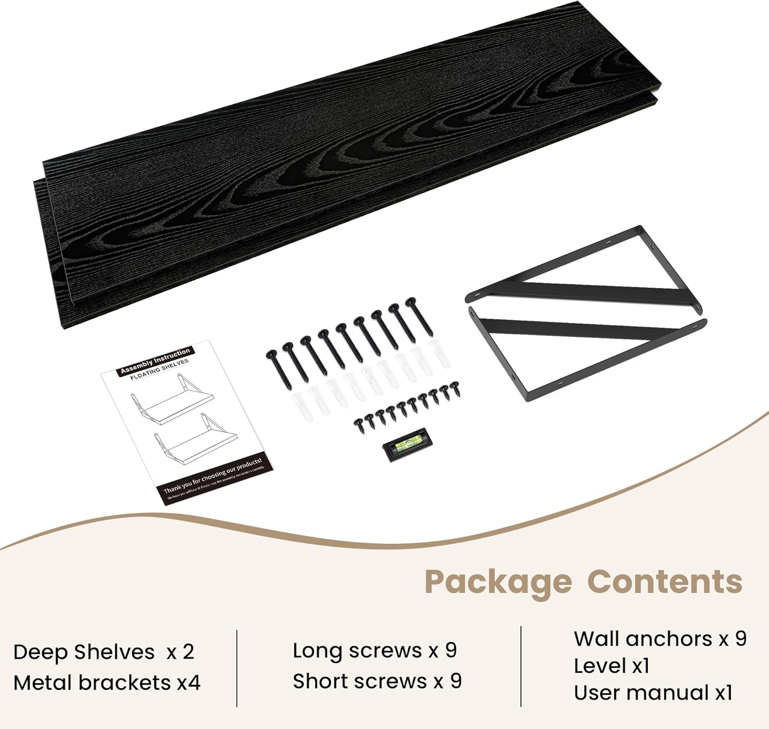 - Easy to assemble: Easy to install in minutes with the installation manual. In addition, when you mount our deep floating shelves firmly on the wall, they can hold up to 80 lbs of weight.