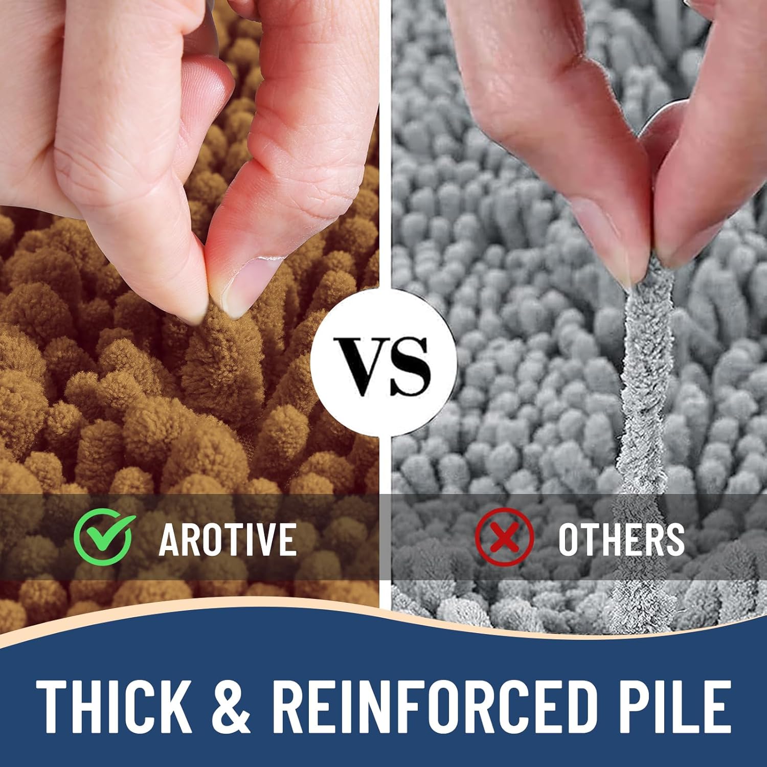 - Anti-Skid Backing: Arotive chenille bathroom rugs feature a non-slip bottom consisting of sturdy mesh PVC material that stops the bath mat from shifting and skidding. The middle layer is 4 mm memory foam, which can let you feel more comfortable when wrapping into the rugs. WARNING: Place bath mat on CLEAN DRY FLAT FLOOR ONLY. Water under bath rug can cause it to slip. Always keep the bottom of bath rug dry