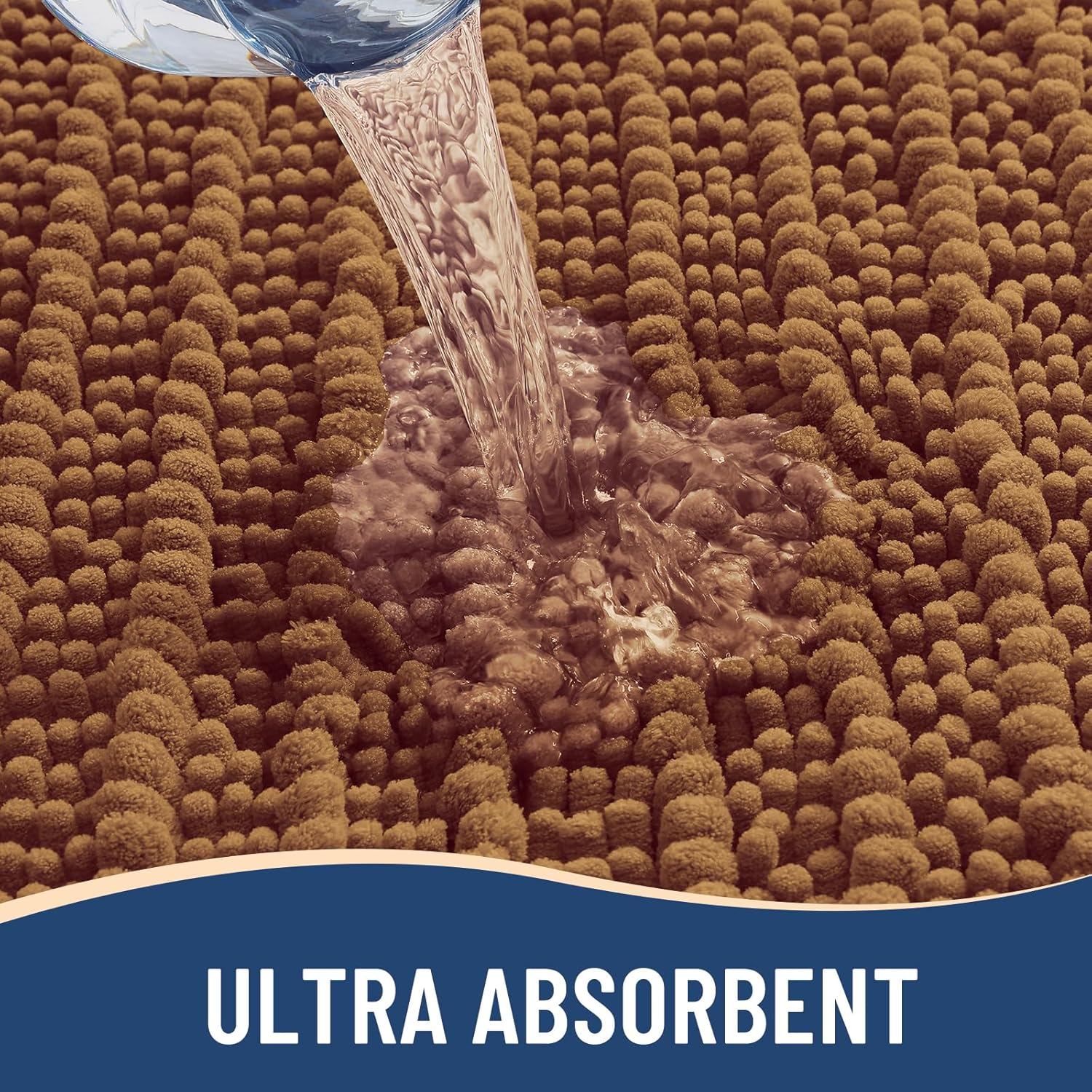 - Quick Water Absorption: Our shaggy bath rugs are made with ultra-soft microfiber shags that efficiently absorb water. The chenille fabric quickly draws in moisture, helping to keep your floors dry when you step out of the bath, shower, or while you're at the sink. The high pile traps moisture, allowing the rug to dry quickly and maintain its cleanliness