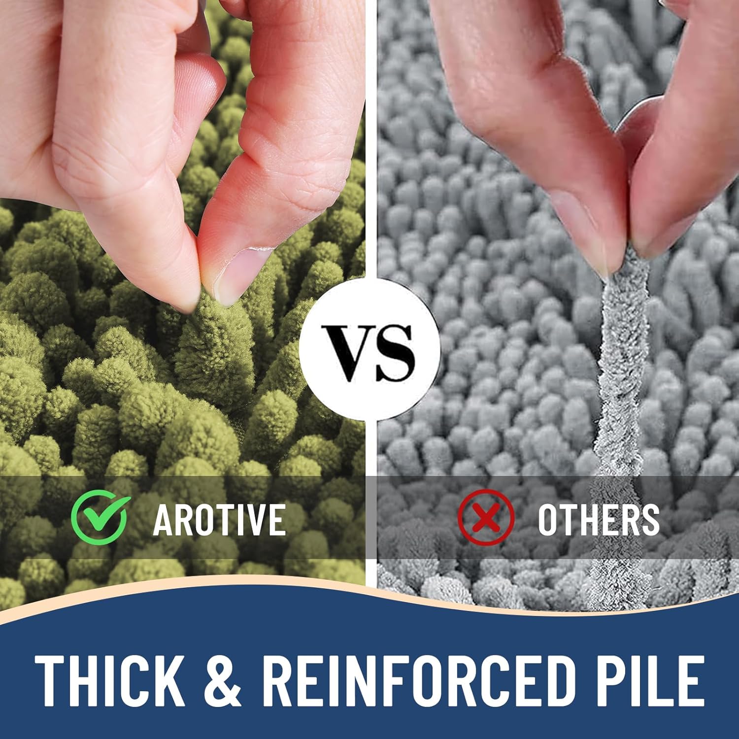 Arotive Luxury Chenille Bathroom Rug Mat, Extra Soft Thick Absorbent Shaggy Bath Rugs, Non-Slip Machine Wash Dry, Plush Bath Mats for Bathroom, Shower and Tub, 24x16, Willow Green