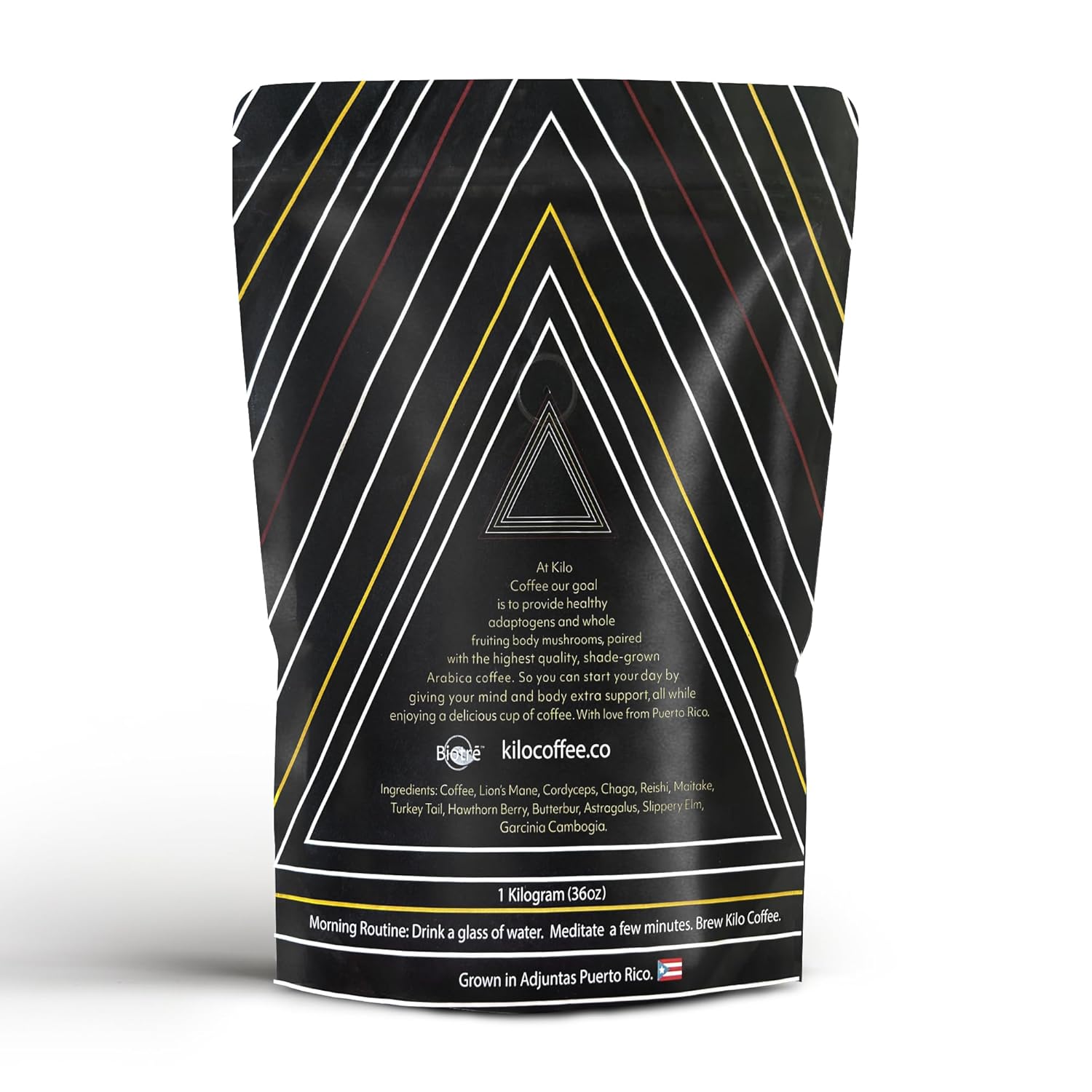 Kilo Coffee - 1 Kilogram Adaptogenic Mushroom Coffee. Whole Fruiting Body: Lions Mane, Chaga, Reishi, Cordyceps. Single Origin from Puerto Rico, Low Acid. 2.2lbs