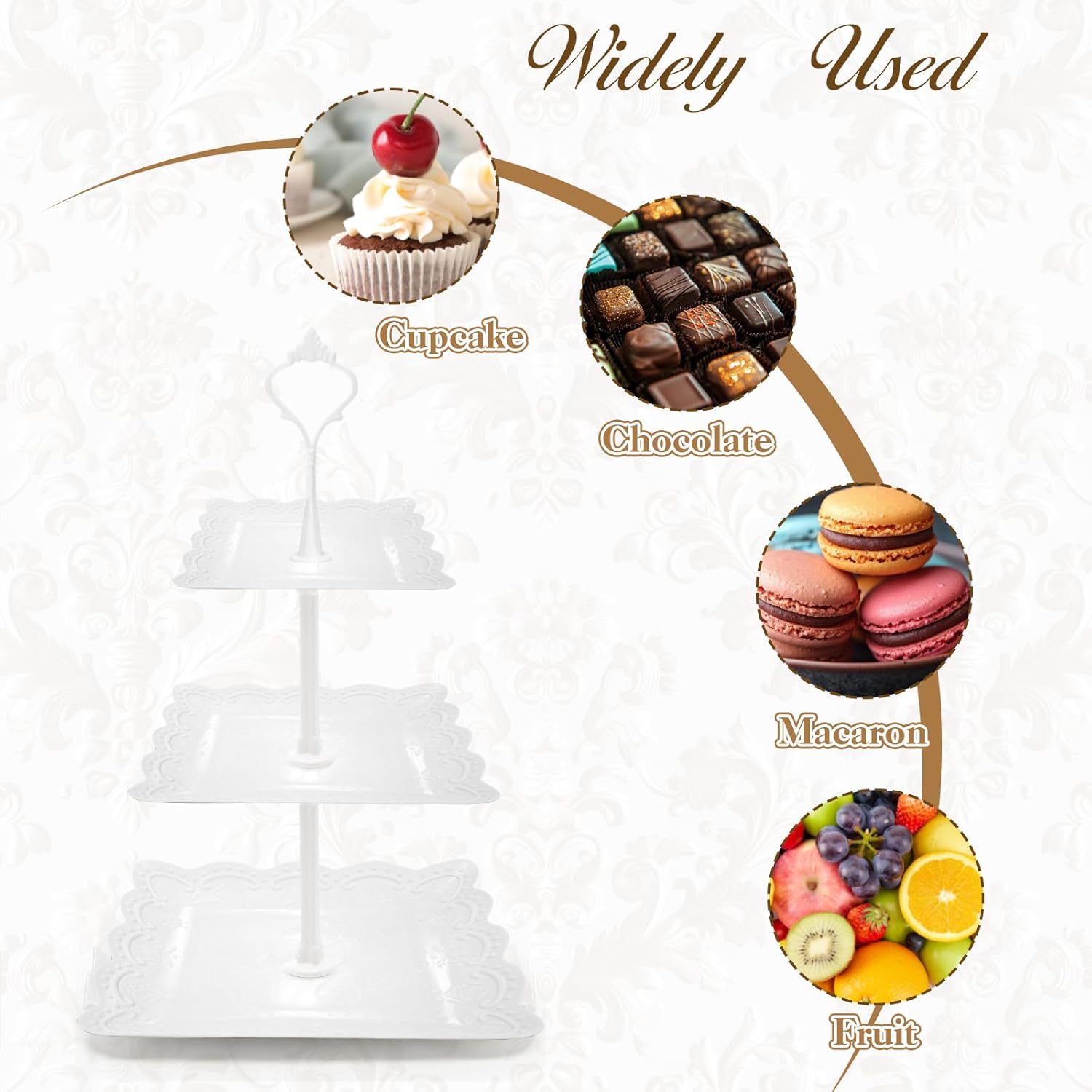 - Spacious Tiered Design: Three roomy tiers offer ample space to showcase cupcakes or appetizers, maximizing table space while creating eye-catching dessert displays.