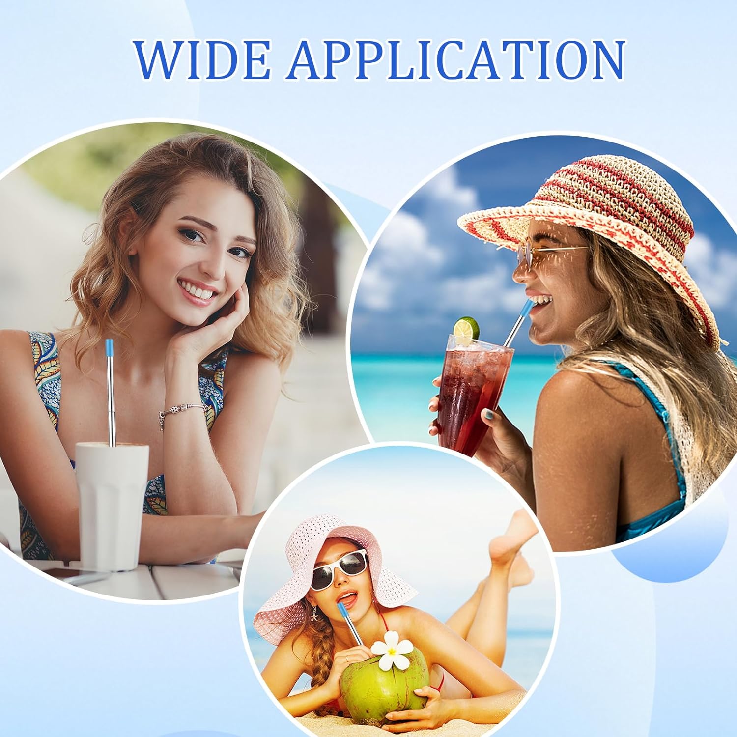 4 Pack Reusable Metal Straws Collapsible Stainless Steel Drinking Straw Travel Portable Telescopic Straw with Case for Cruise Ship Essentials Black-Silver-Rose Gold-Blue