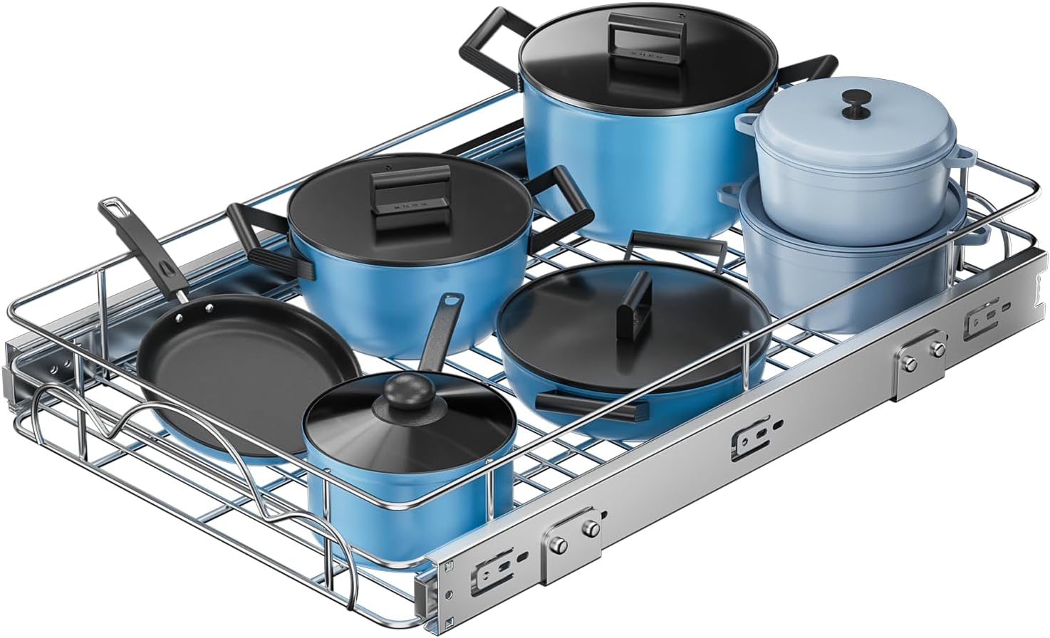 - 【High-Quality Craftsmanship, Strong Anti-Rust Performance】LIONONLY Heavy-Duty pull out drawers for cabinets are polished by a variety of processes, and then chrome-plated finishes are used to increase their hardness, wear resistance, corrosion resistance. Home pull out shelves suitable for any style of cabinet, easy to clean. It features an anti-scratch film that is easy to clean and leaves no marks.