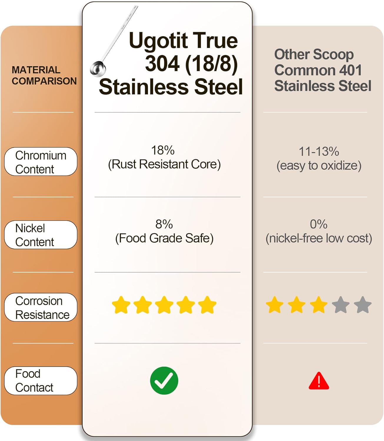 - 【Rust-Resistant Stainless Steel】-Food-grade 304 construction. Stainless steel coffee scoop withstands daily use without corrosion.