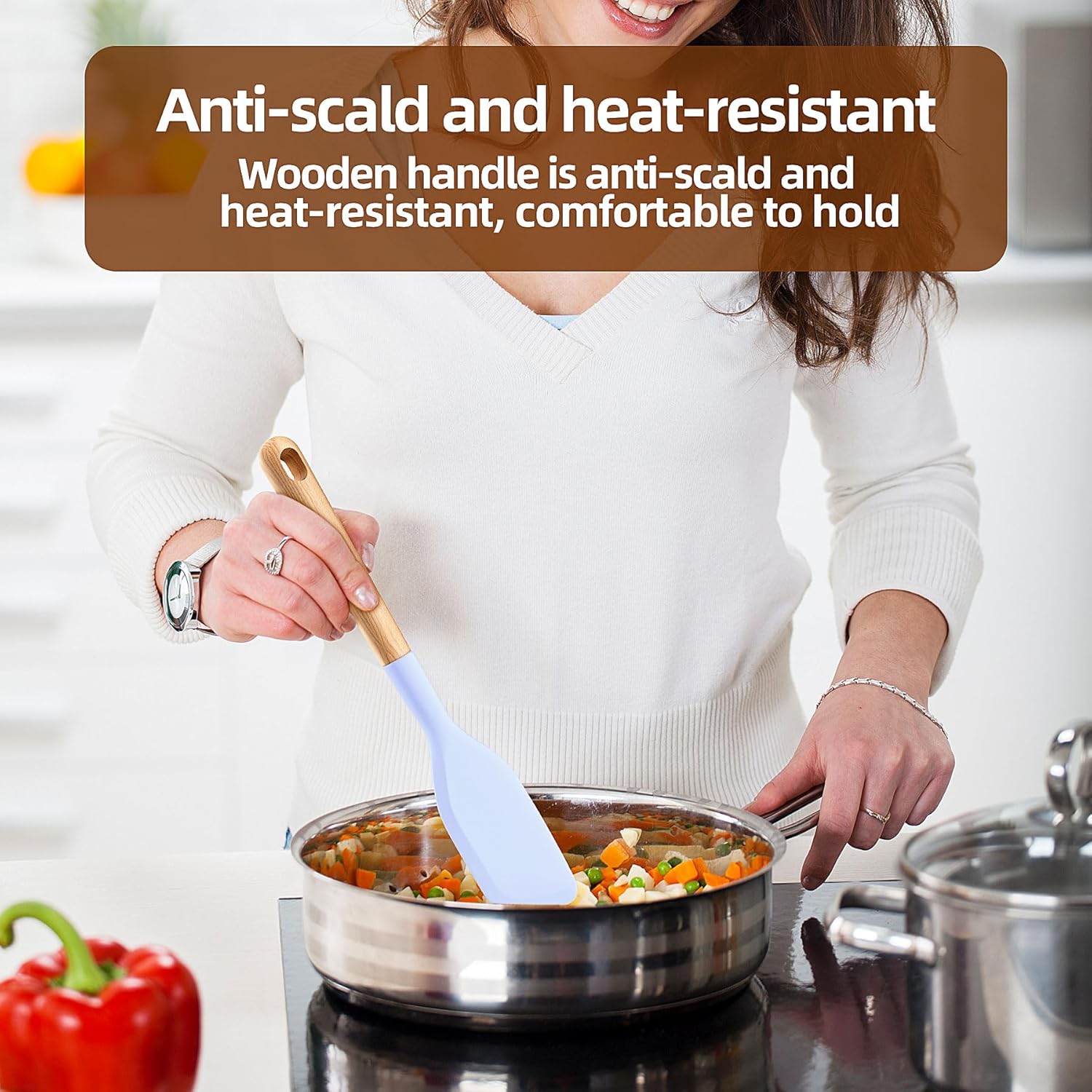 - ✅ 🍳Safety:wooden handle spatula set Easily Clean, It can be cleaned in the dishwasher, the soft cloth is clean, the surface of the wooden handle has no burrs, and it is smooth and does not hurt your hands.