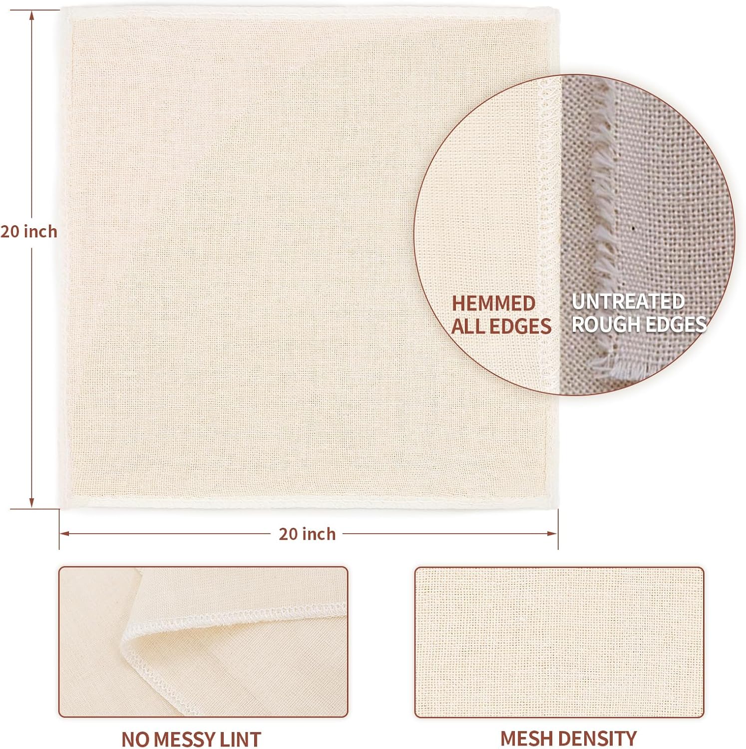 - 【Reusable & Durable】Made from tightly woven cotton, our cheese cloths can withstand the rigors of frequent use, whether using them to strain yogurt, make cheese, or filter broths. No more worrying about rips or tears after a few uses. But the durability doesn't stop there. These straining cloth are highly reusable. After each use, simply wash them in the sink with mild soap and warm water, or toss them in the washing machine for a more thorough clean. They'll come out looking and feeling as good as new, ready for your next culinary adventure.