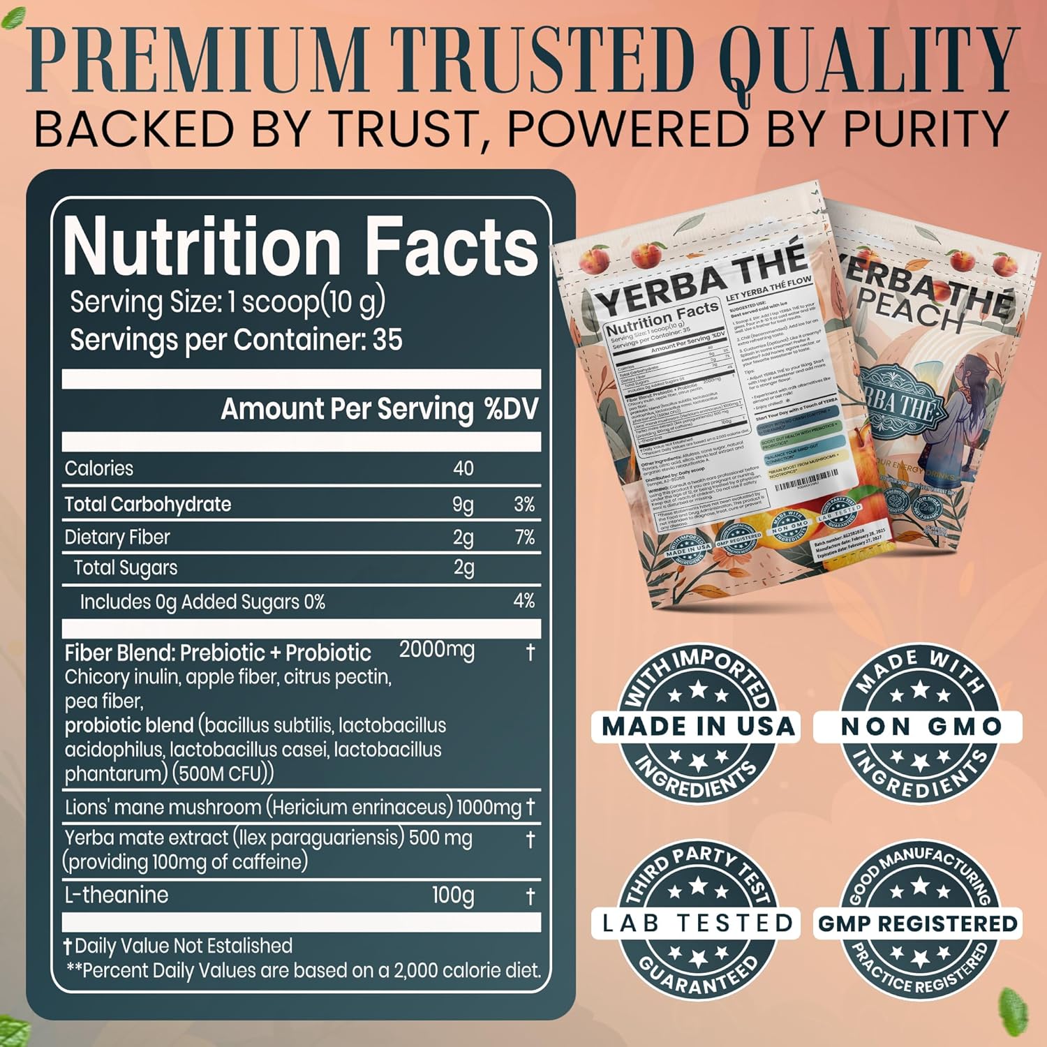 - Instant Refreshment with Peach Yerba Mate Flavor: Enjoy a cool twist with yerba mate peach flavour in a convenient instant tea powder. Whether you prefer it hot or cold, this yerba mate peach drink offers all the benefits of yerba tea and yerba-mate with zero hassle. Your go-to for a refreshing yerba mate drink anywhere, anytime.