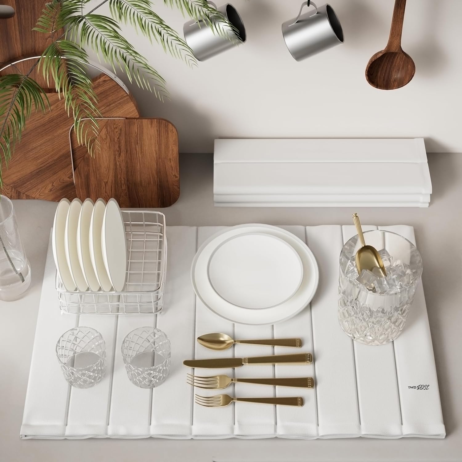 Stone Drying Mat for Kitchen Counter-Super Absorbent PU Dish Drying Mat, Quick Dry Stone Mat Kitchen for Dishes, Bottles & Cups, Large Foldable Stone Dish Drying Mat, Non-Slip Kitchen Mat