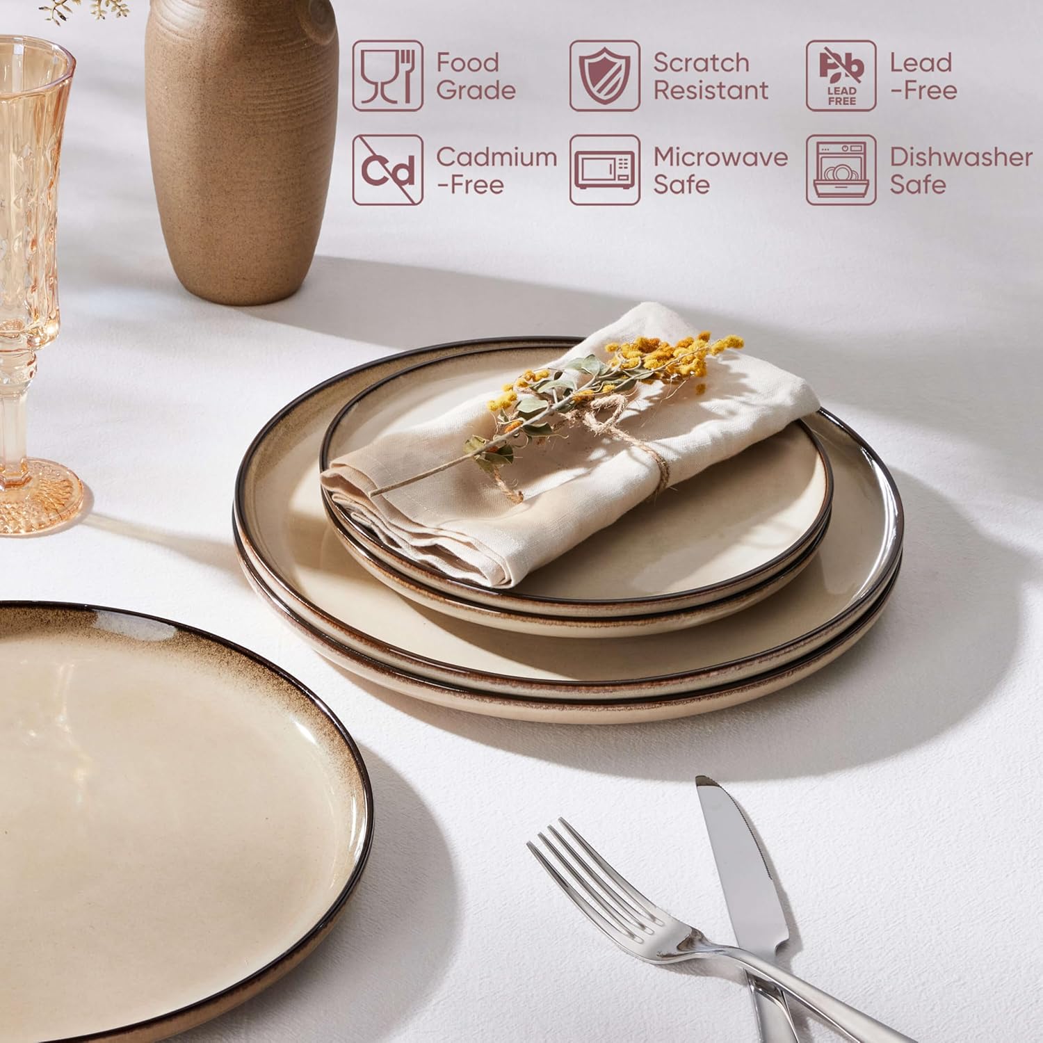 Herogo Ceramic 10.43 Inch Dinner Plates Set of 6, Stoneware Dinnerware Plate Set, Double Reactive Glaze Large Dinnerware Plates for Kitchen, Microwave, Oven & Dishwasher Safe, Cream Khaki
