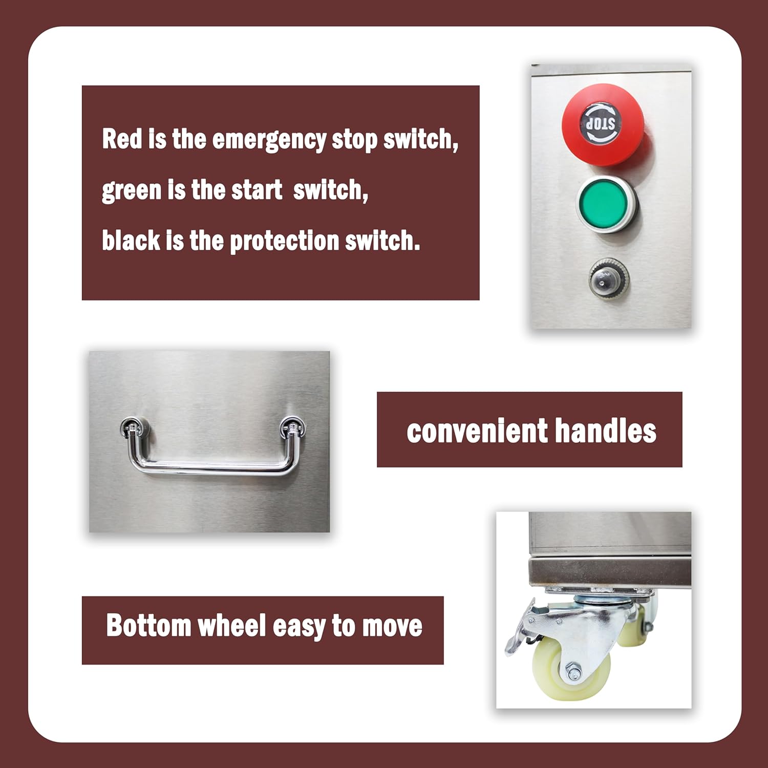 - [4.5MM meat slicer] TJ-130L Stainless Commercial Meat Slicer with 4.5mm Blade. The blades are made of special stainless steel material with high hardness and durability. Hourly production of sliced meat: 400kg/h.