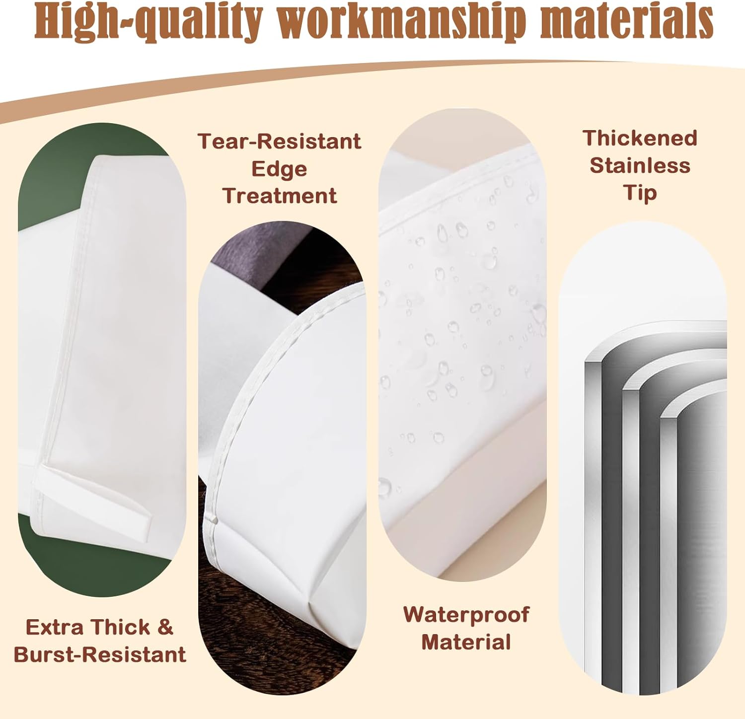 - 【Durable Materials】Made from thick reusable cotton piping bags that resist slipping during use, giving you steady control while frosting. At the same time, this piping bag is thicker and less likely to tear than ordinary piping bags. The stainless steel tips are healthier and longer-lasting than plastic alternatives.