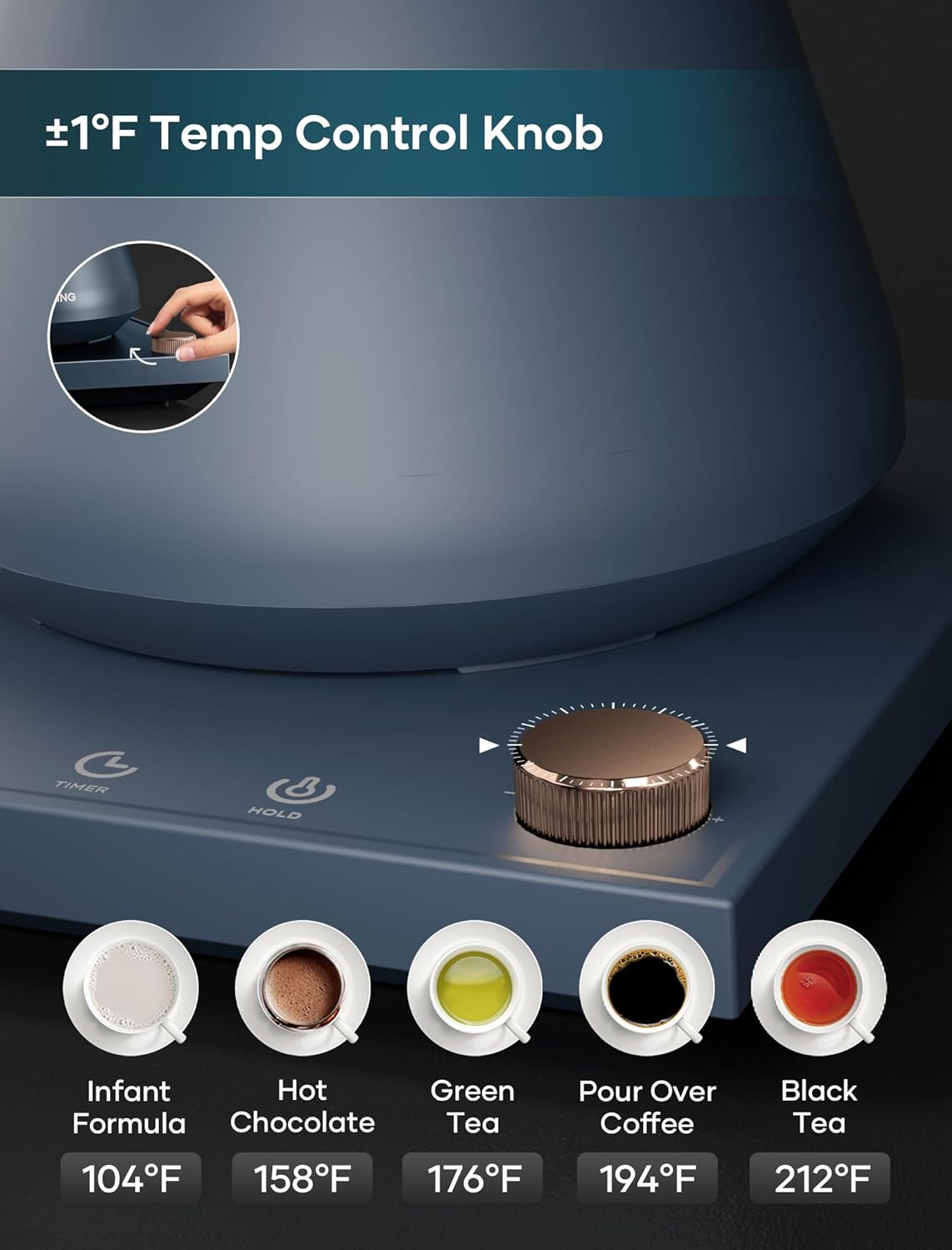 Electric Kettles, Gooseneck Electric Kettle, ±1℉ Temperature Control, Stainless Steel Inner, Quick Heating, for Pour Over Coffee, Brew Tea, Boil Hot Water, 0.9L Navy Blue