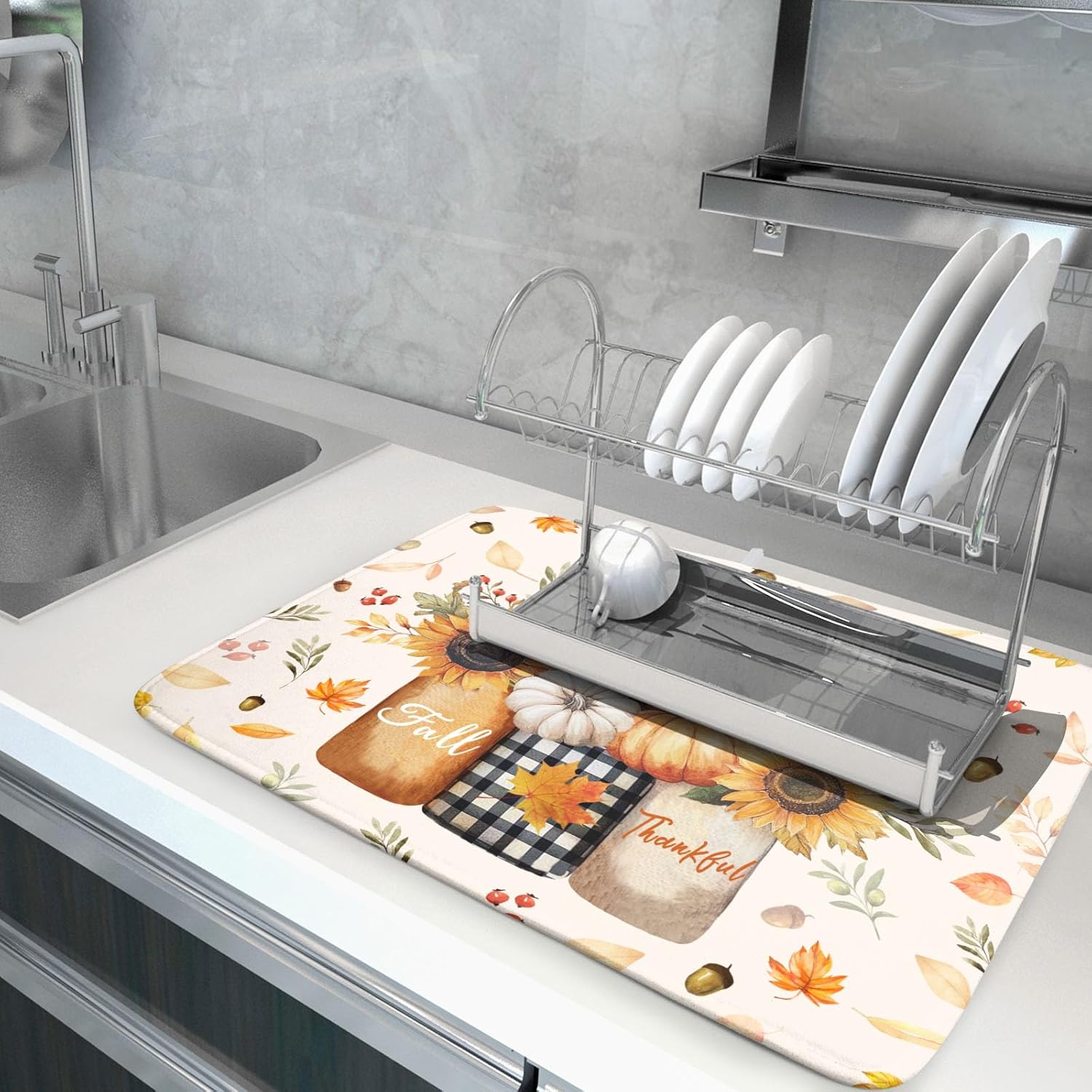 - 4【Great Present】: Due to the unique colorful designs and do not fade, our autumn kitchen dish mat can be a great present for your family and friend. In addition, it's a good choice for housewife and cooking lover.