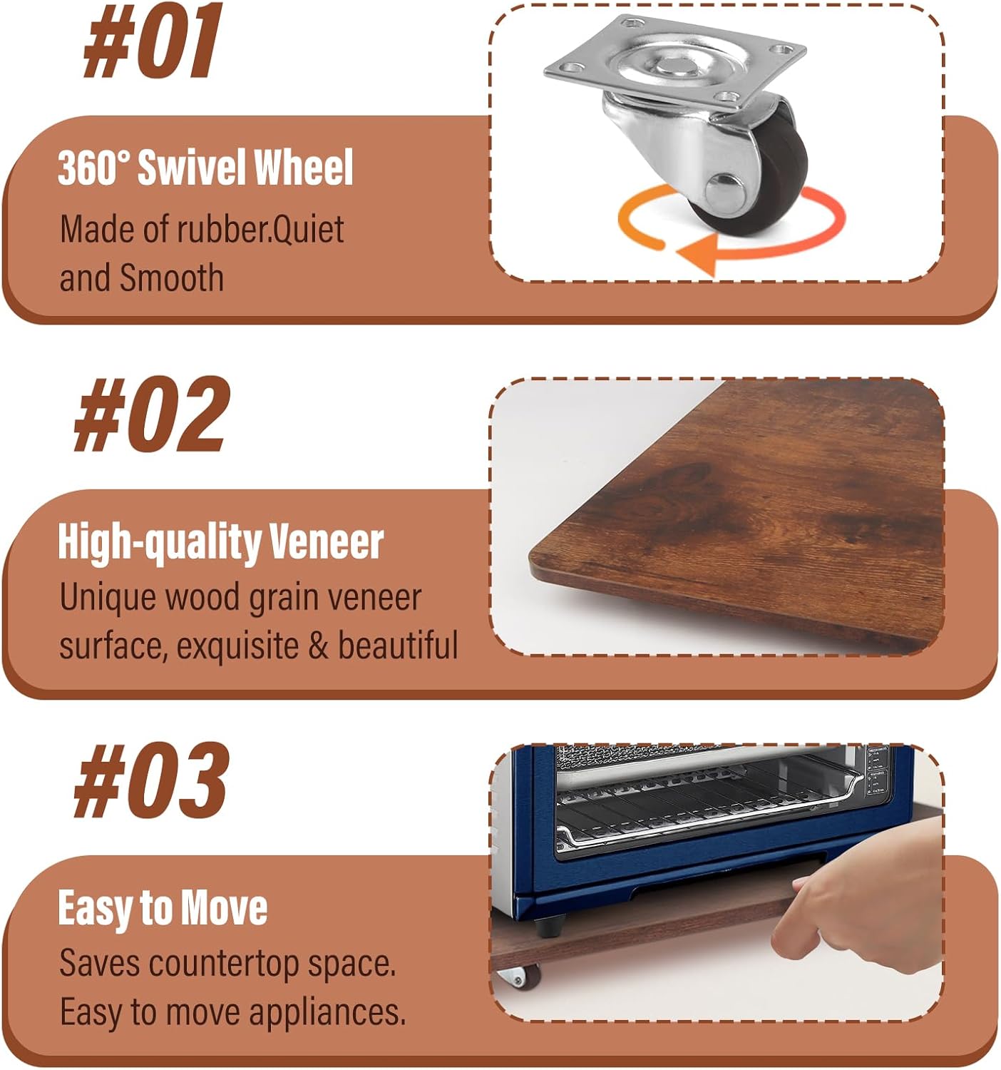 - 【Multi-Functional Rolling Tray】The sliding tray measures 13“ × 9.4” × 1.2", suitable for Breville, Keurig K-Mini, Ninja, small coffee makers, espresso machines, air fryers, toasters, and stand mixers.