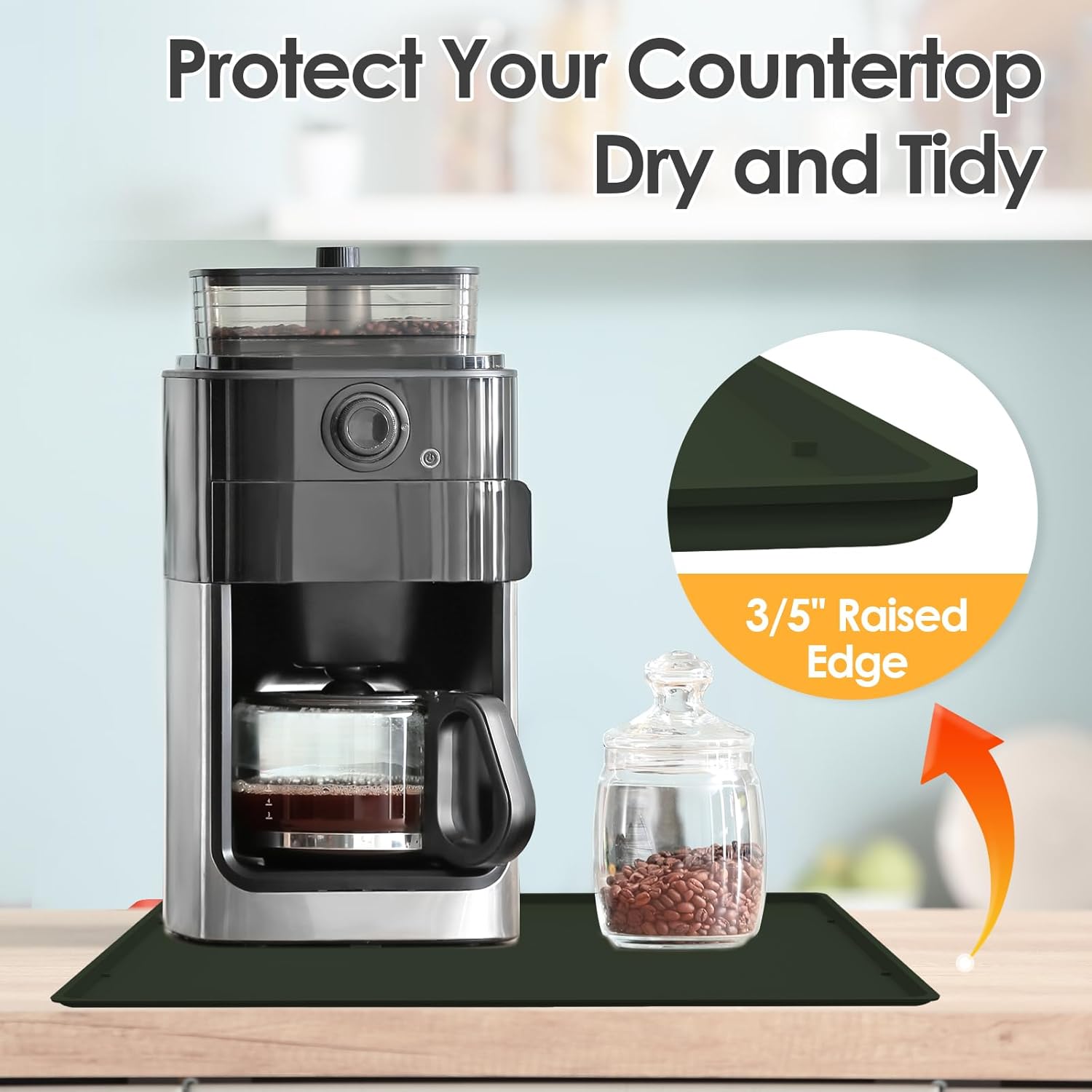 - 100% Water Does Not Flow Out: The coffee maker mat is built with 3/5" raised edge, like a tray and it can contain any liquid spills from the coffee maker. The premium material not only protect your countertop from scratches, especially protect the wood countertop, but also keep your your countertop tidy, clean.