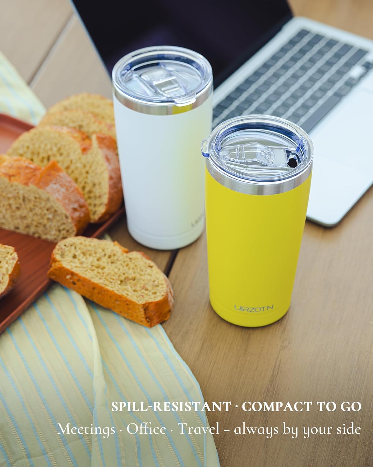 Travel Coffee Tumbler 20oz, Leakproof Travel Coffee Mug with Lid and Straw, Stainless Steel Double Wall Vacuum Insulated Tumbler for Hot/Iced Drinks (Textured Matte, Yellow)