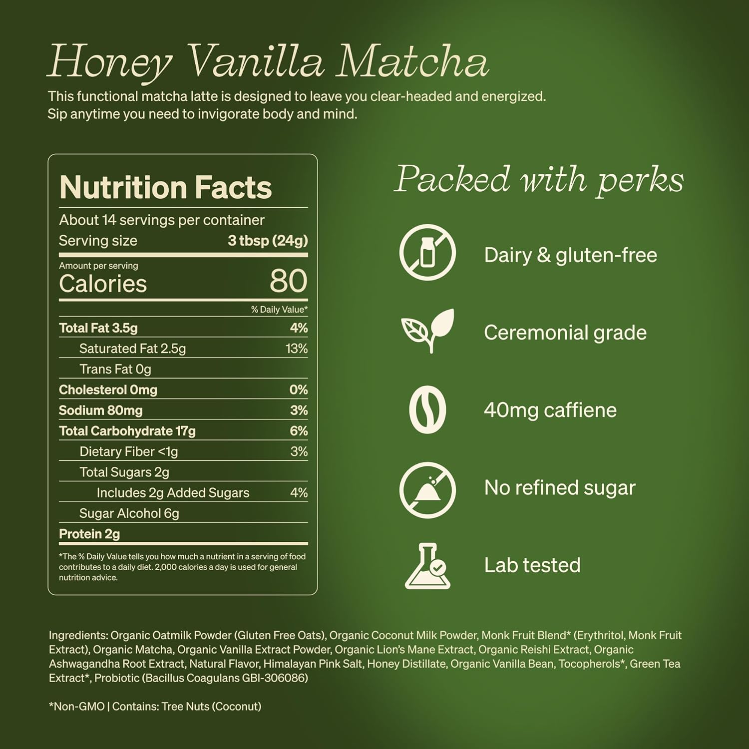 - CEREMONIAL GRADE MATCHA POWDER: Introducing our Matcha SuperLatte—A ceremonial-grade matcha latte for steady energy without the crash. Upgraded with relaxing adaptogens, probiotics for gut health, and antioxidants for vibrant skin.