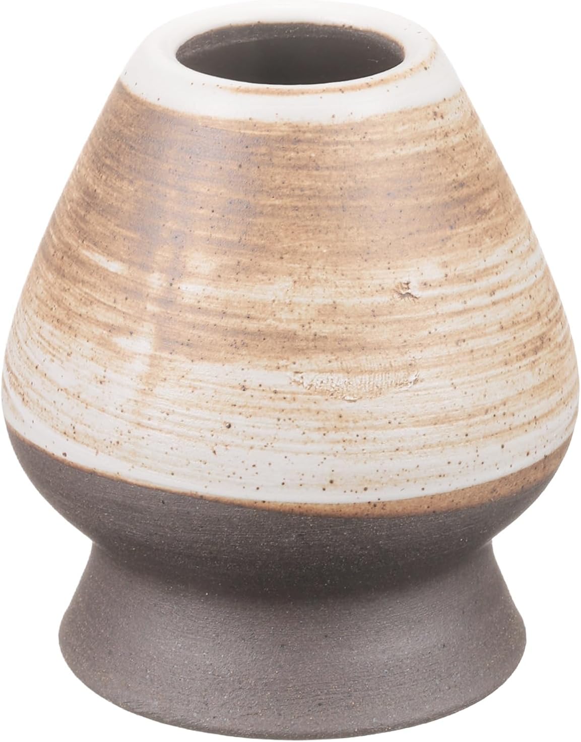 HARFINGTON Ceramic Chasen Stand 70mm Matcha Whisk Holder Teas Set Whisks Stand Traditional Matcha Tea Chasen Holder Tea Set Accessories for Tea Tasting, Earth Yellow/White