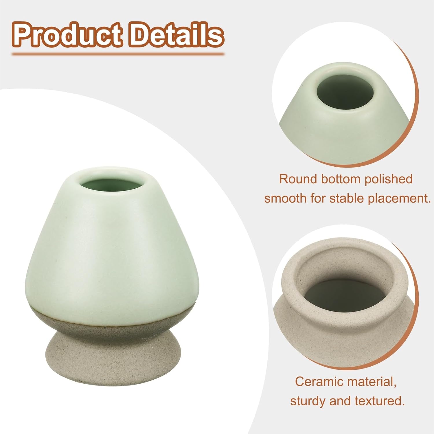 - Material - The tea whisk holder is made of ceramic, which is sturdy and textured, keeps it clean, and extends the life of the tea whisk. It adopts a simple design style, and the bottom is polished smoothly and finely, aiming to provide a stable and convenient support platform for placing the tea whisk.