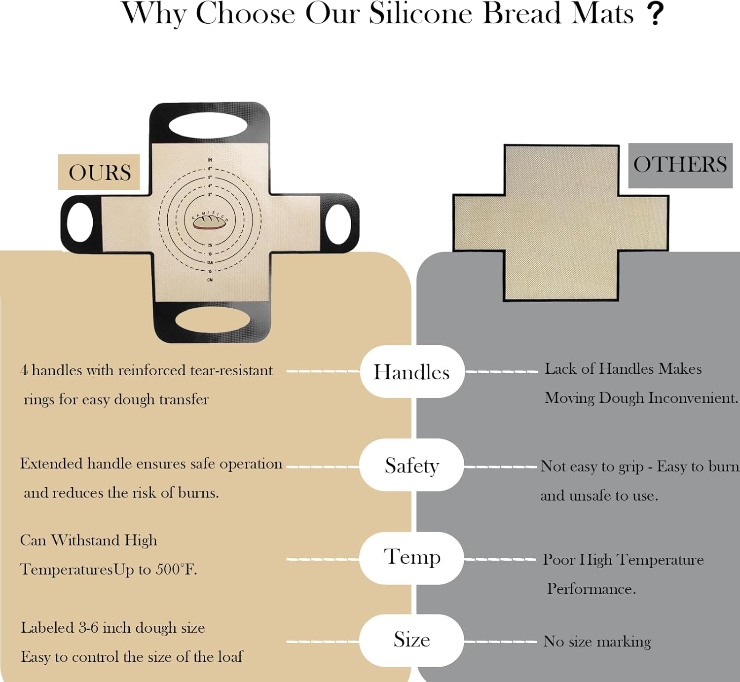 - 【Secure 4-Handle Design】Four reinforced handles provide stability during dough transfer and oven handling, minimizing spills while protecting hands from heat.