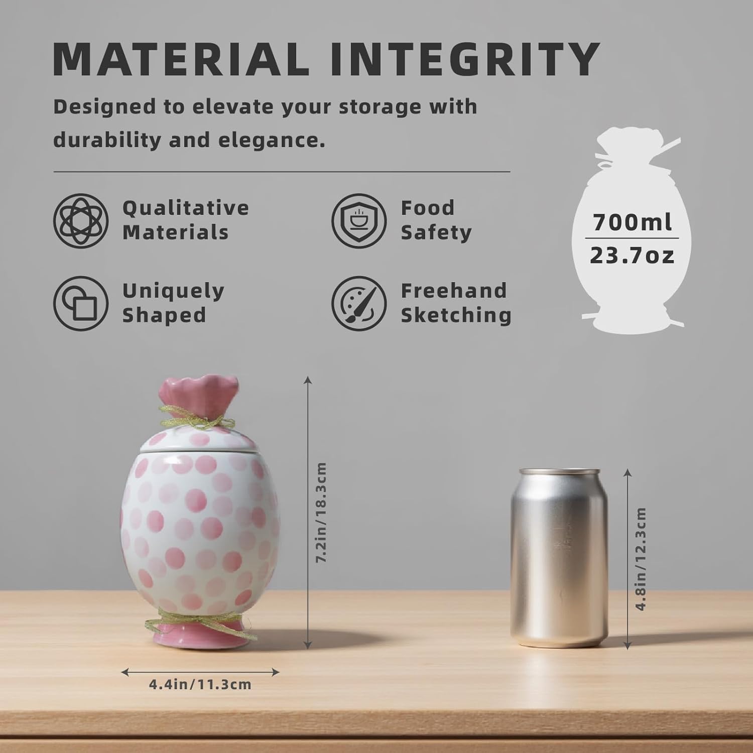 Cute Storage Jars with Airtight Lid, Funny Candy Shape Ceramic Food Container, Cookie Canister for Coffee Bean, Sugar, Tea, Spices, Cereal, Nuts, Dog Treat-700 ml / 23.7 oz(Pink Dots)