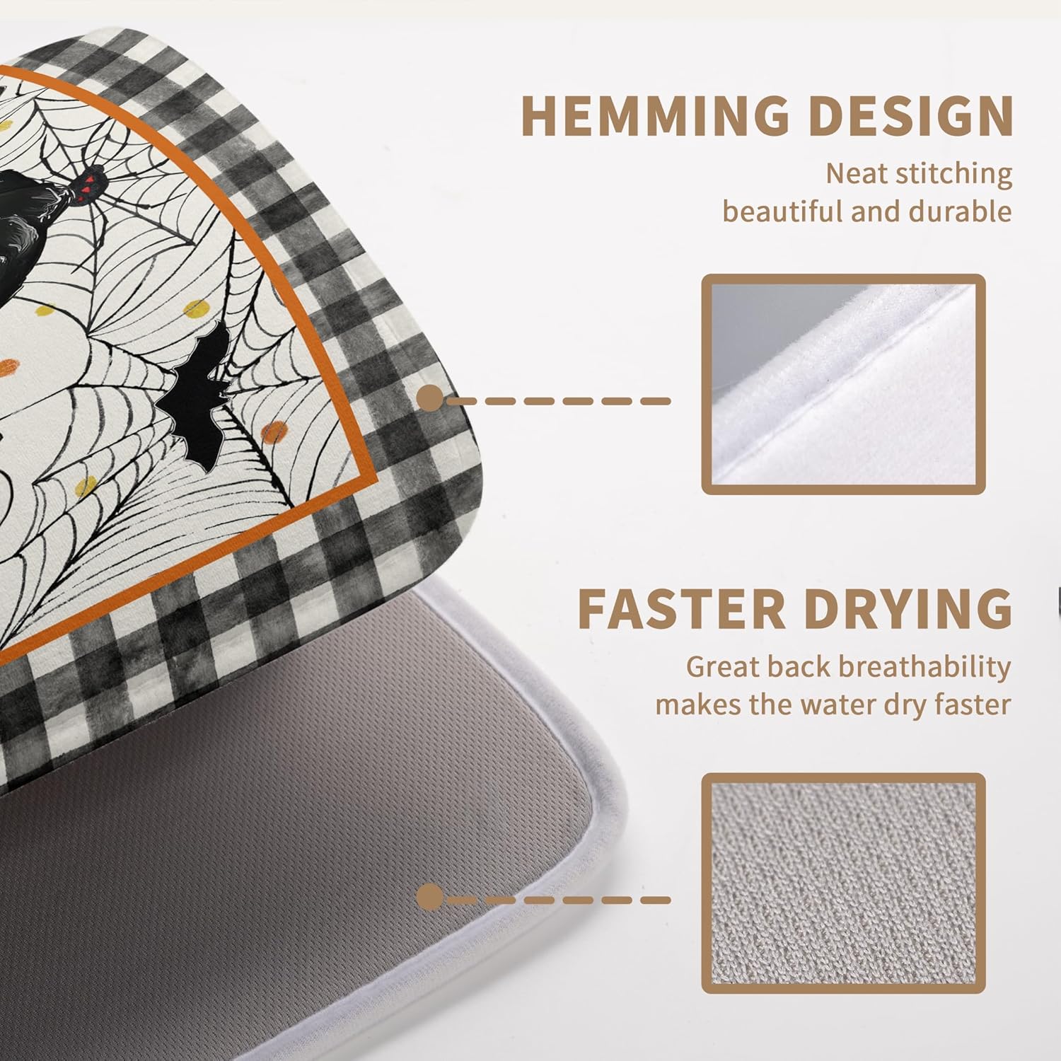 - [Multi-functional]: This Halloween Buffalo Plaid Pumpkins dish drying mat can be placed under the dish rack to collect dripping water to keep the counter dry and clean, or you can place bottles, pots, plates, bowls, cups and other utensils directly on the mat. Fall Pumpkin Rustic Large dish drying mat can also be placed under the coffee machine to absorb spilled coffee.