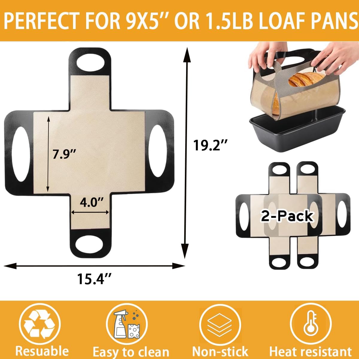 Silicone Bread Sling Mat - Reusable Sourdough Bread Making Loaf Pan Lifter Liner Non-stick & Easy Clean Dough Transfer Mats with 4 Handles Fits for 9x5" or 1.5lb Loaf Pans