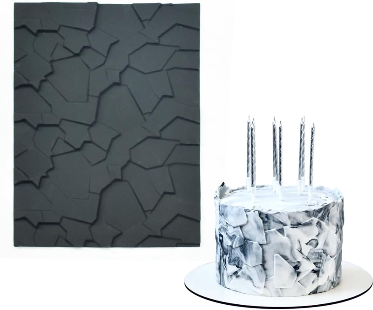 mostsom Fondant Silicone Mold for Cake Decoration Cake Border Stone Patter Impression Mat Fondant Embossing Stencil for DIY Cookies, Cupcakes, Chocolate, Clay – Reusable, Flexible (E_ Stone Patter)