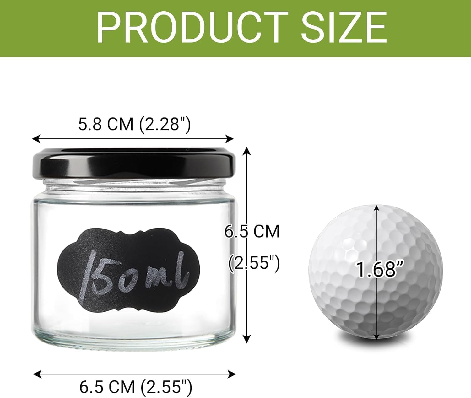 - Packaging Including: 24 Pack 5oz (150ml) mini mason jars with lids, equipped with 24 labels for item classification