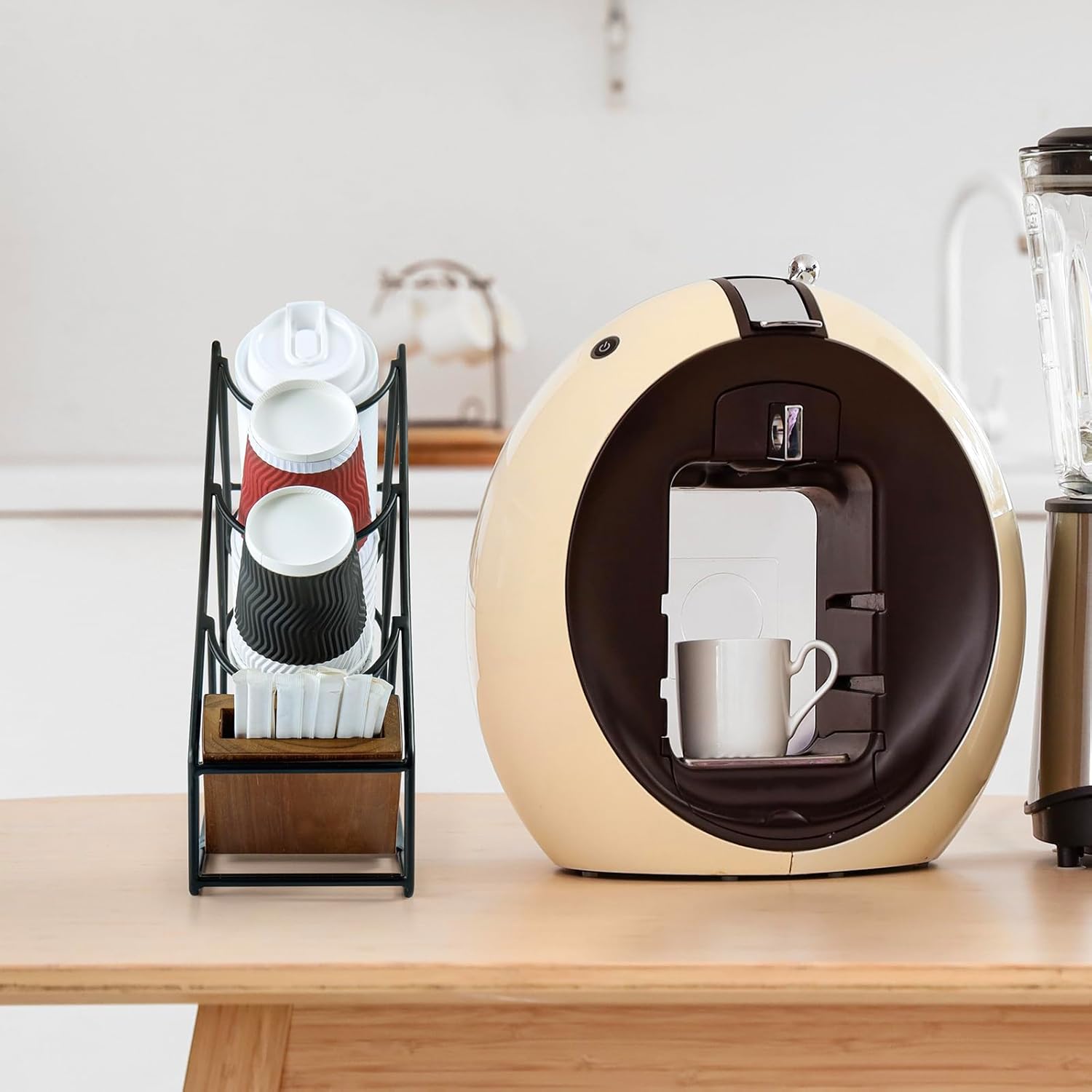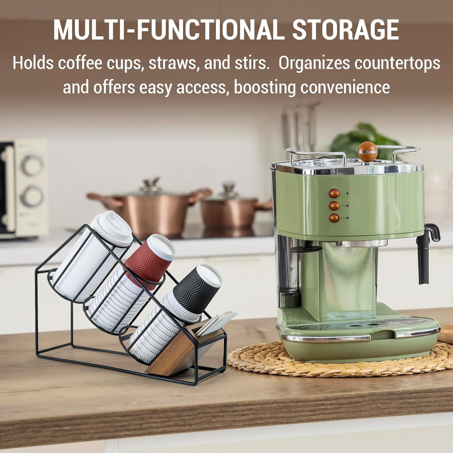 - Stylish Industrial Design: Combines matte black metal wire with a natural acacia wood base for a modern, rustic look that enhances kitchens, offices, cafés, or breakrooms
