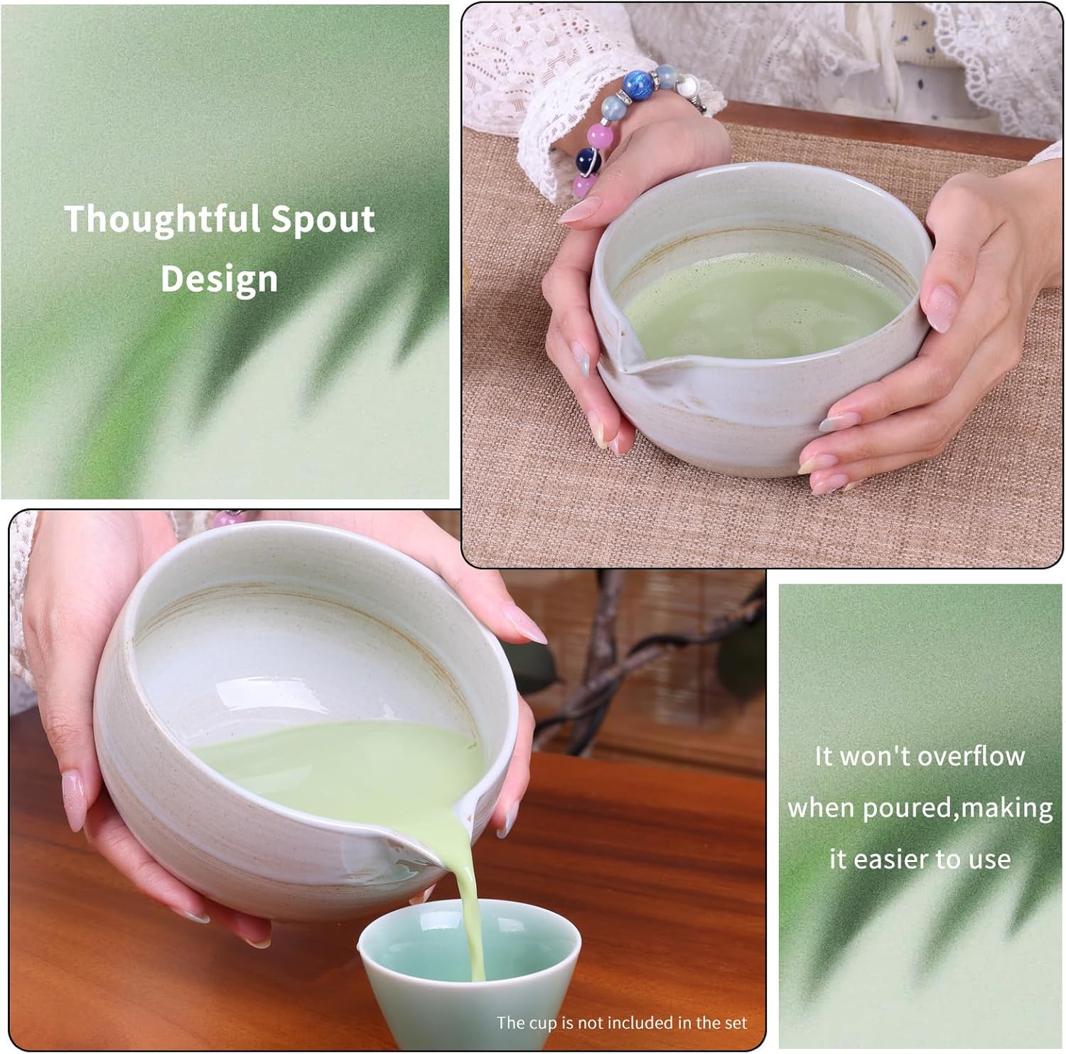 - Everything You Need: Includes:Ceramic matcha bowl with spout,Bamboo whisk + ceramic holder,Stainless sifter, bamboo scoop, microfiber towel