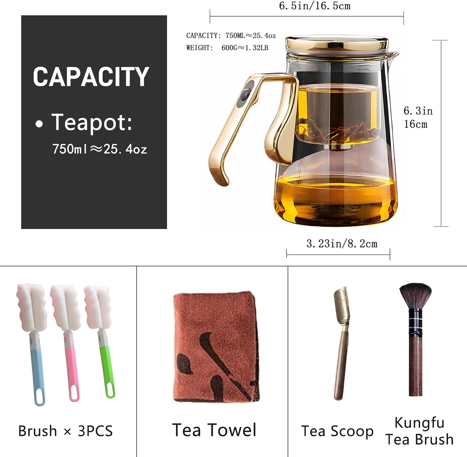 - COMPLETE TEA SET: Includes a 25.4oz glass teapot with magnetic strainer, cleaning brushes, and tea tools such as tea spoon, tea towel, teapot pen for the perfect brewing experience.