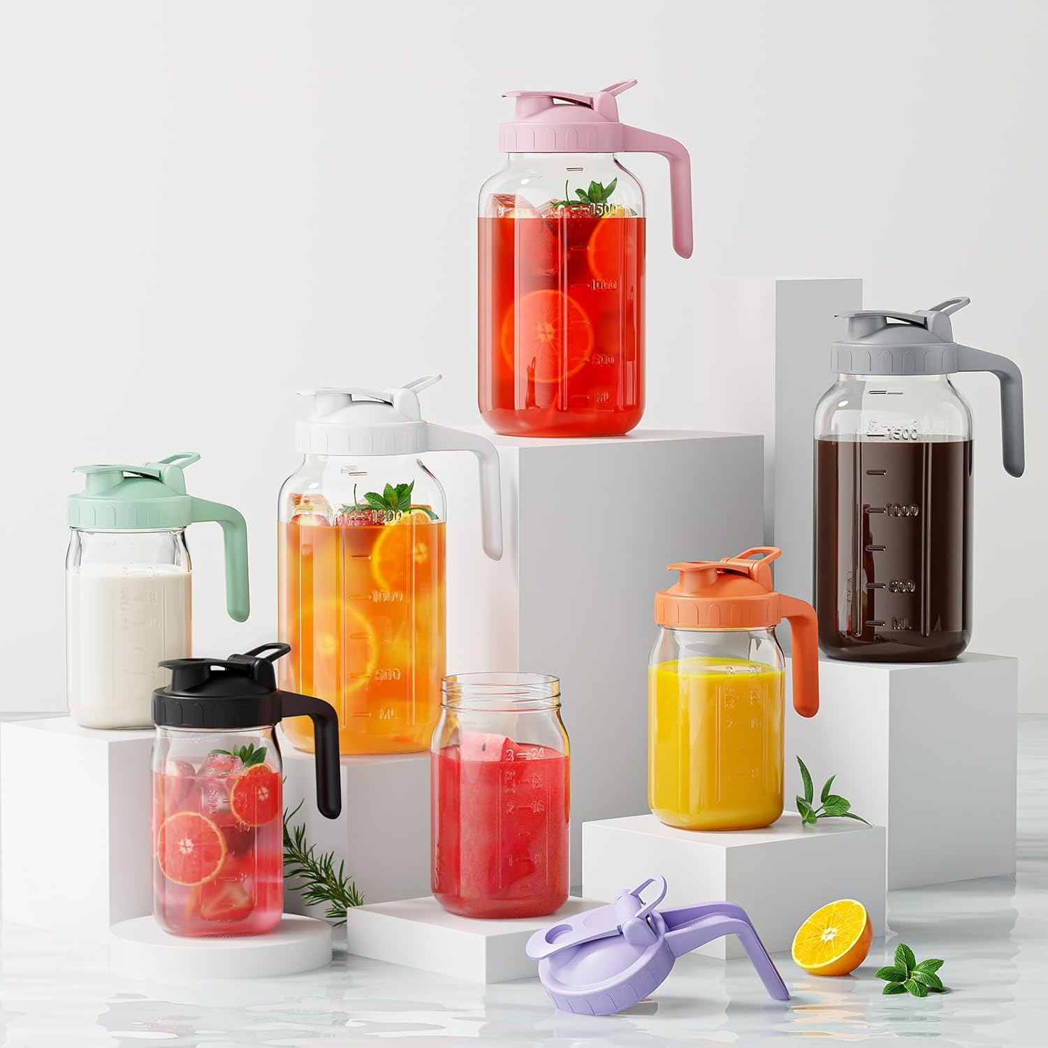 - 【Safety Glass Pitcher 】 - The mason jar pitcher is made of premium heavy duty food grade glass, BPA free, Lead free. Safe for dishwashers, easy to clean