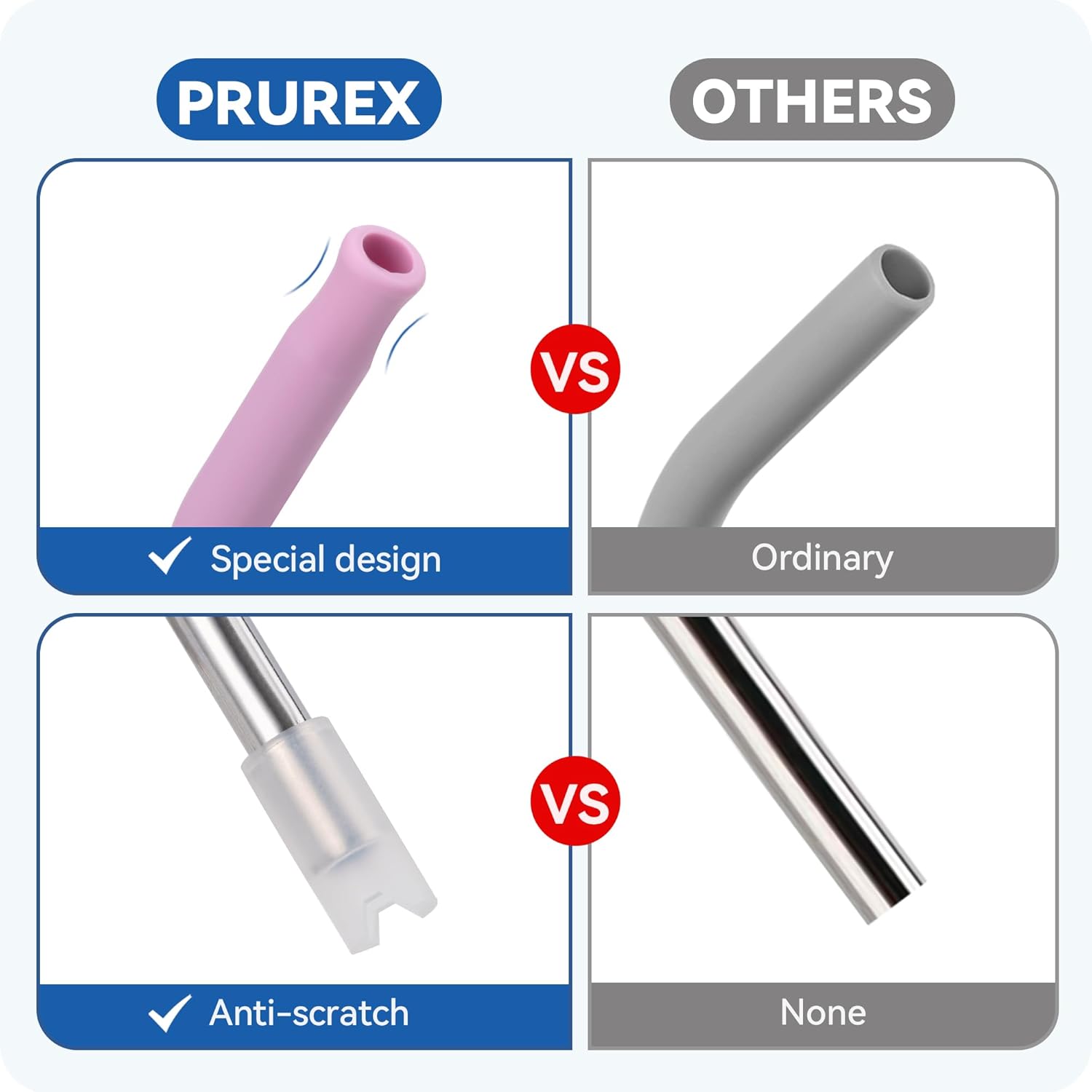 - Silicone Tips: Food-grade silicone tips avoids direct contact between teeth and lips and metal straws. Whether it's cold or hot drinks, it won't burn or freeze lips when drinking, providing protection while sipping,and is soft and comfortable