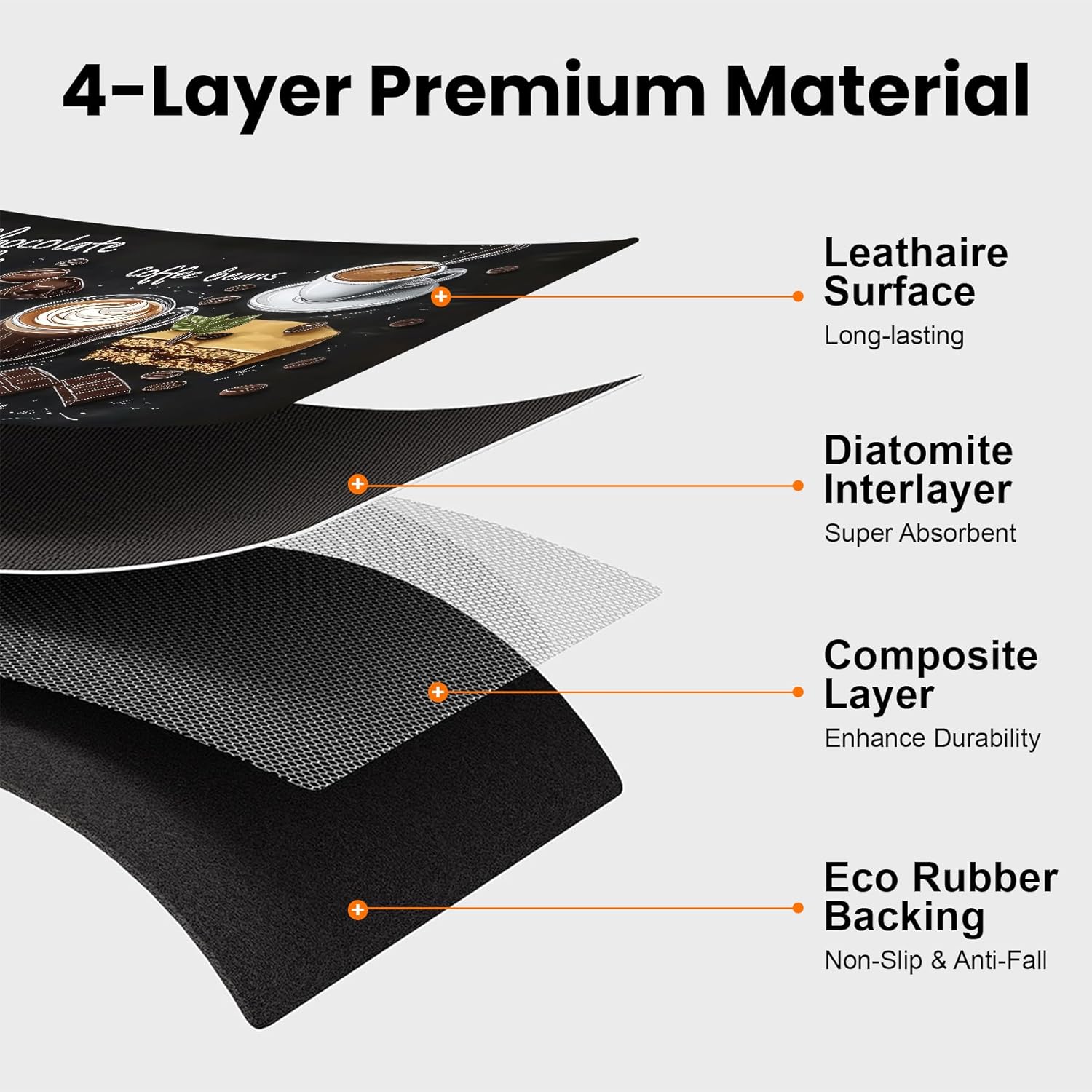 - Premium Coffee Mat - BVBOX 17"x 32" coffee bar mat is made of durable and tear-resistant materials, ensuring long-lasting durability. Its four-layer design features super water absorption, leak-proof and anti-slip performance, providing reliable protection for your countertop.