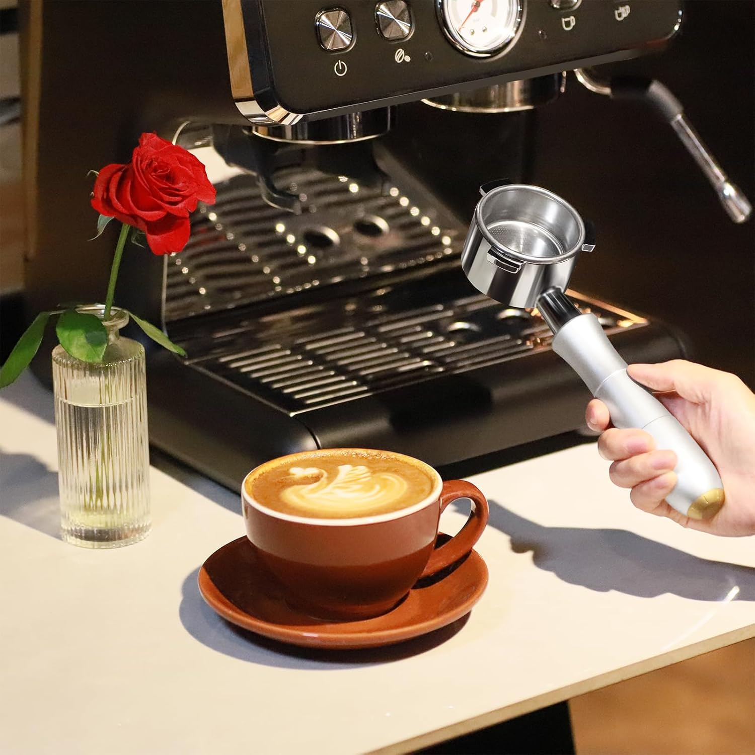 - 【Ergonomic Design】 Quaility aluminum handle offers a non-slip grip and ergonomic comfort for precise tamping. The MEION bottomless portafilter is detachable and designed for quickly cleaning to enhance your brewing experience.
