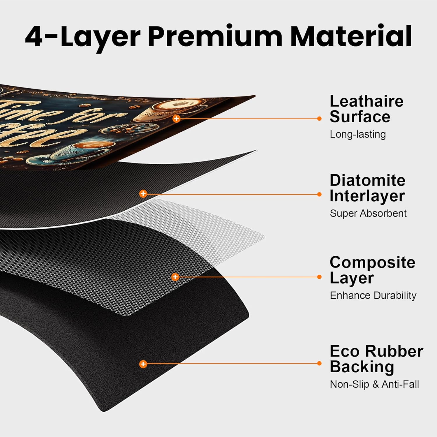 - Premium Coffee Mat - BVBOX 17"x 32" coffee bar mat is made of durable and tear-resistant materials, ensuring long-lasting durability. Its four-layer design features super water absorption, leak-proof and anti-slip performance, providing reliable protection for your countertop.