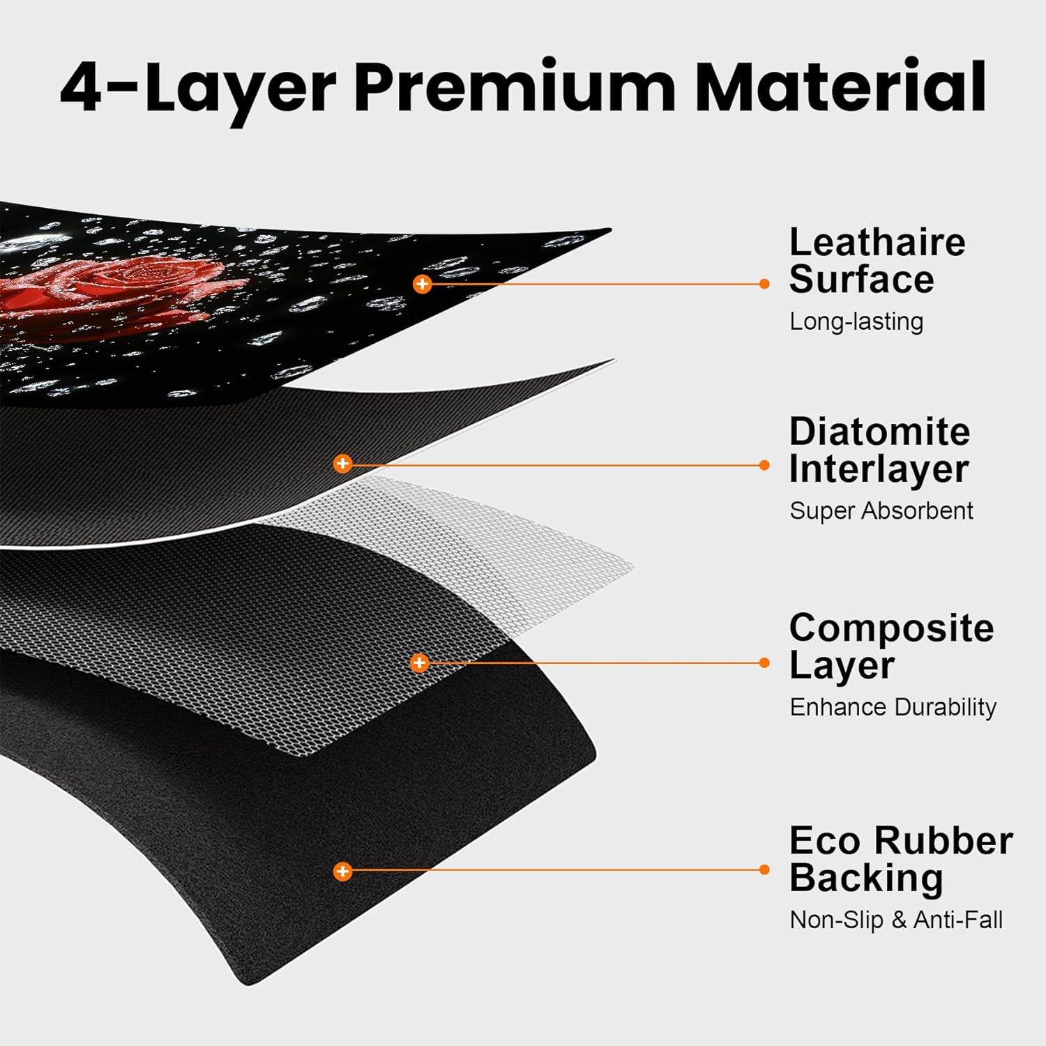 - Premium Coffee Mat - BVBOX 17"x 32" coffee bar mat is made of durable and tear-resistant materials, ensuring long-lasting durability. Its four-layer design features super water absorption, leak-proof and anti-slip performance, providing reliable protection for your countertop.