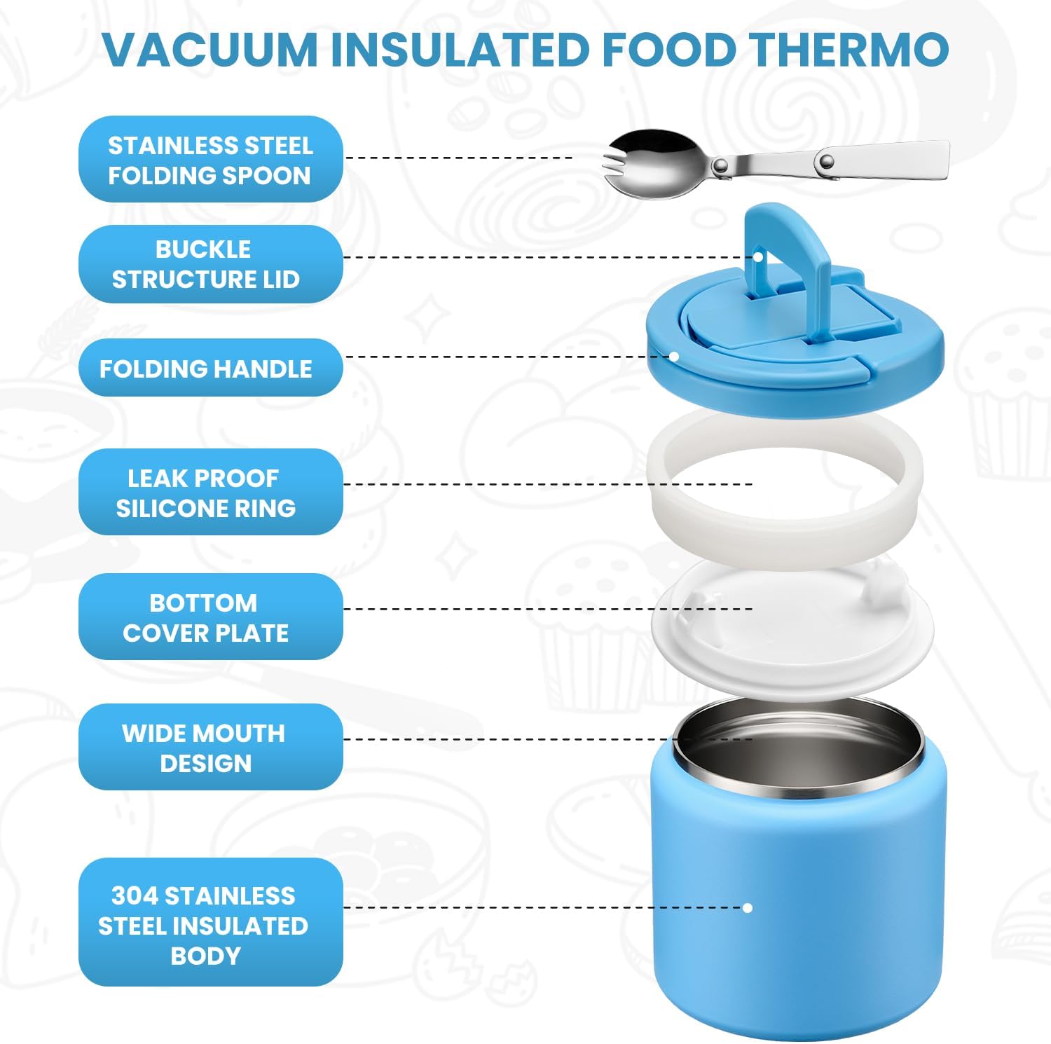 Soup Thermo for Hot Food Kids 25.5oz Lunch Containers with Buckle Lid Wide Mouth Hot Food Jar Vacuum Insulated Stainless Steel Bento Box Leakproof with Spoon(Blue)