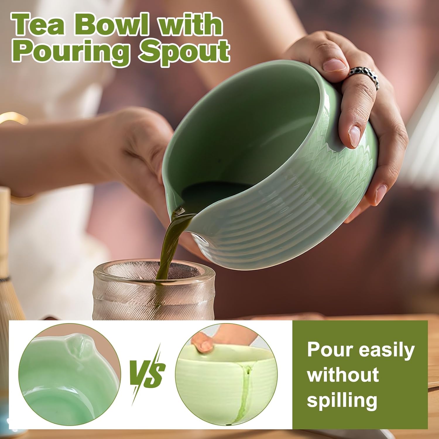 - Effortless Tea Ritual: ① Sift matcha powder with the stainless steel sifter. ② Whisk vigorously in the wide-matcha bowl using the bamboo chasen. ③ Pour smoothly via the spout design—no spills. Dishwasher-safe for quick cleanup.
