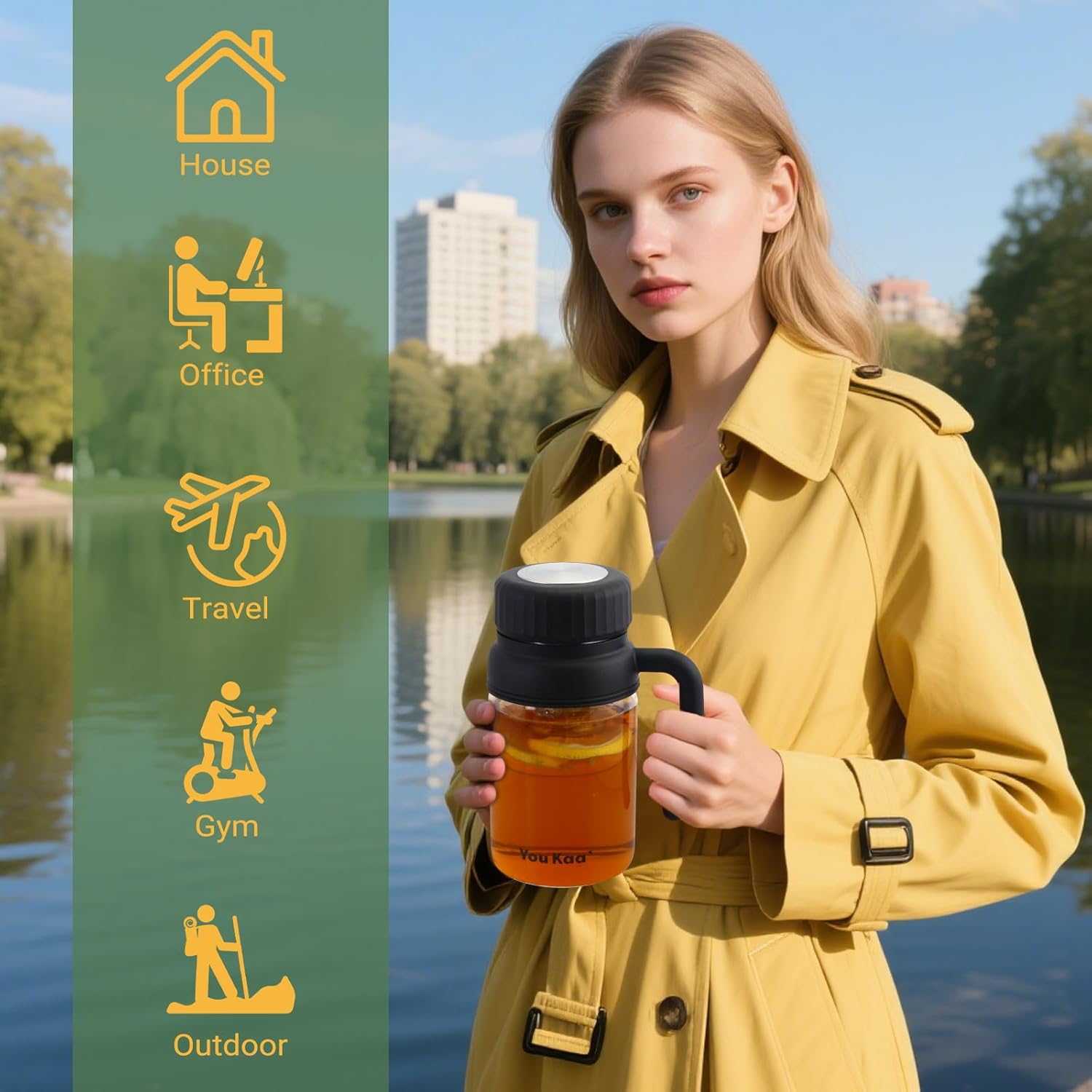 - 【High - Quality Glass Material】:Tea infuser bottle crafted from high - borosilicate glass, it withstands extreme temperatures without cracking. Enjoy hot tea or icy cold drinks, and the clear glass lets you admire your drink’s color and ingredients.