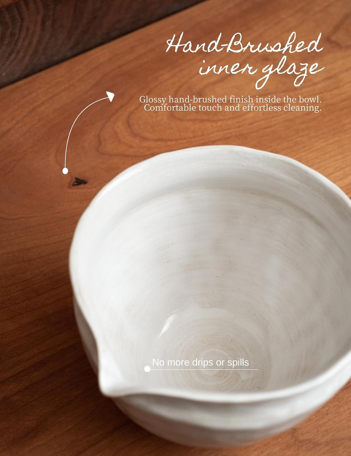 - Authentic Japanese Wabi-Sabi Aesthetic: Rooted in Japanese matcha culture, this set embodies the wabi-sabi philosophy — celebrating imperfect, natural beauty. Hand-shaped and hand-glazed, each step embodies the artisan’s heart.