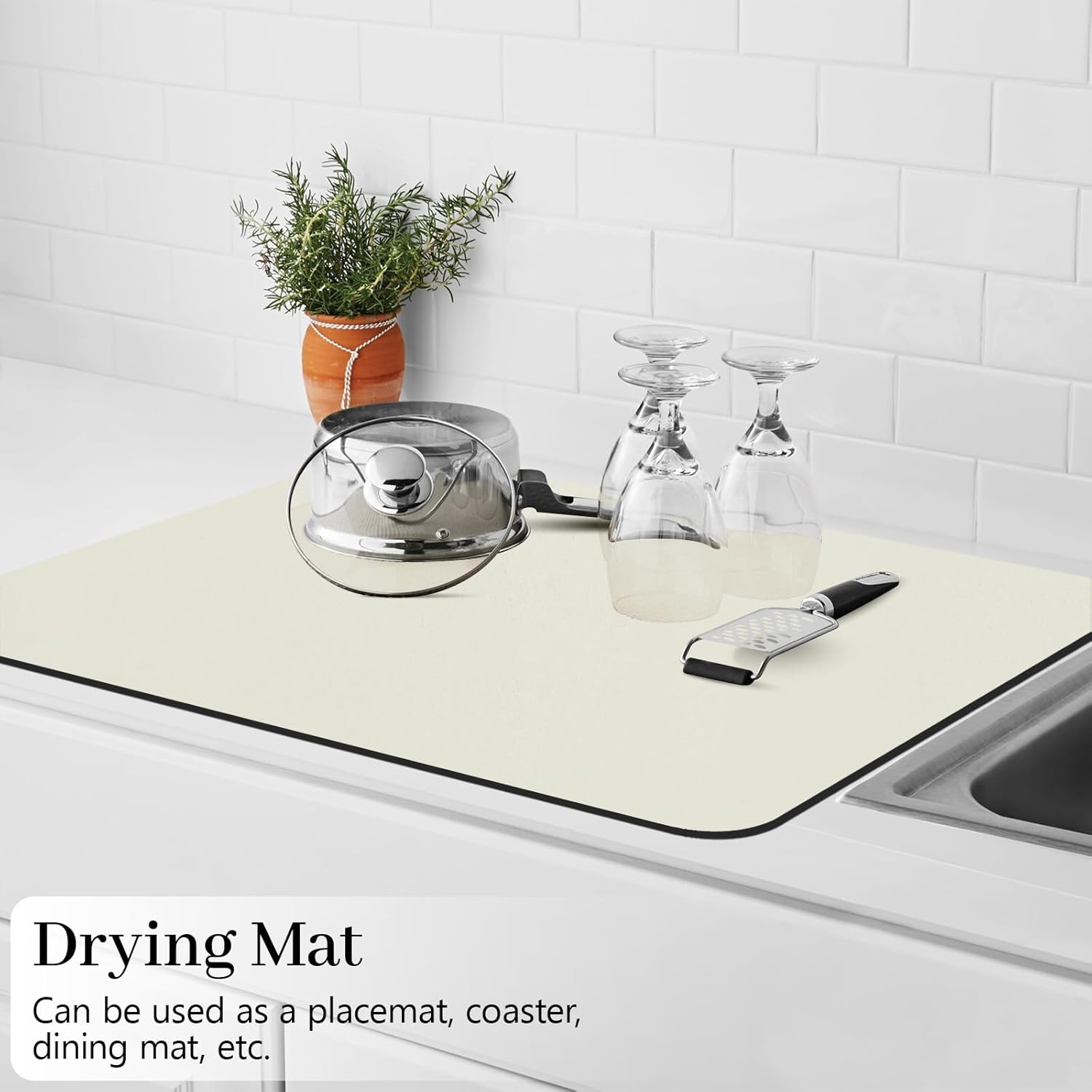 Bloss Coffee Bar Mat, Absorbent / Hides Stains / Rubber Backed - Dish Drying Mat Fits Under Coffee Maker or Espresso Machine(16.1"x24.1", Off White)