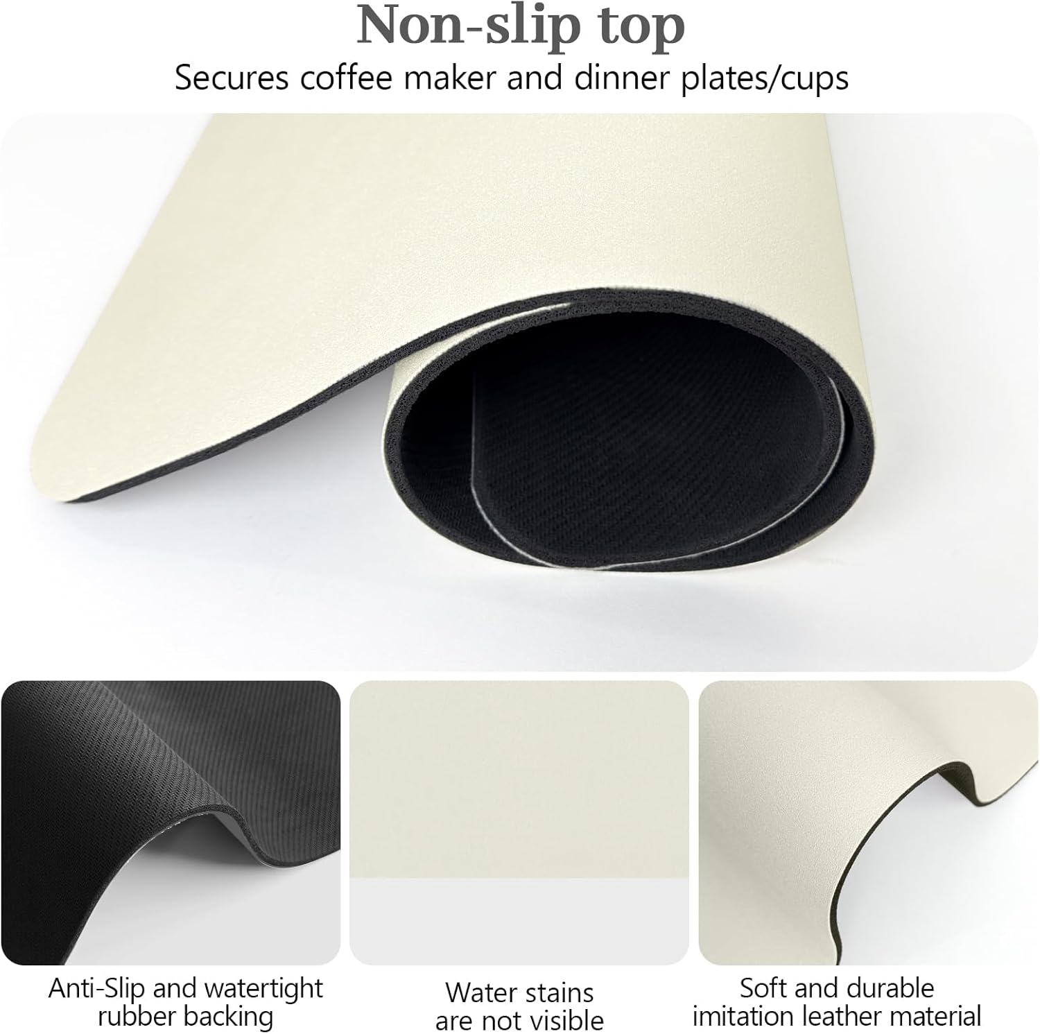 - 【Coffee Maker Mat For Countertops】Keep your coffee maker and countertops clean from spills with a coffee mat. This coffee bar mat protects your kitchen countertop surfaces from coffee splashes or coffee bean stains and can avoid the trouble of cleaning the countertops.