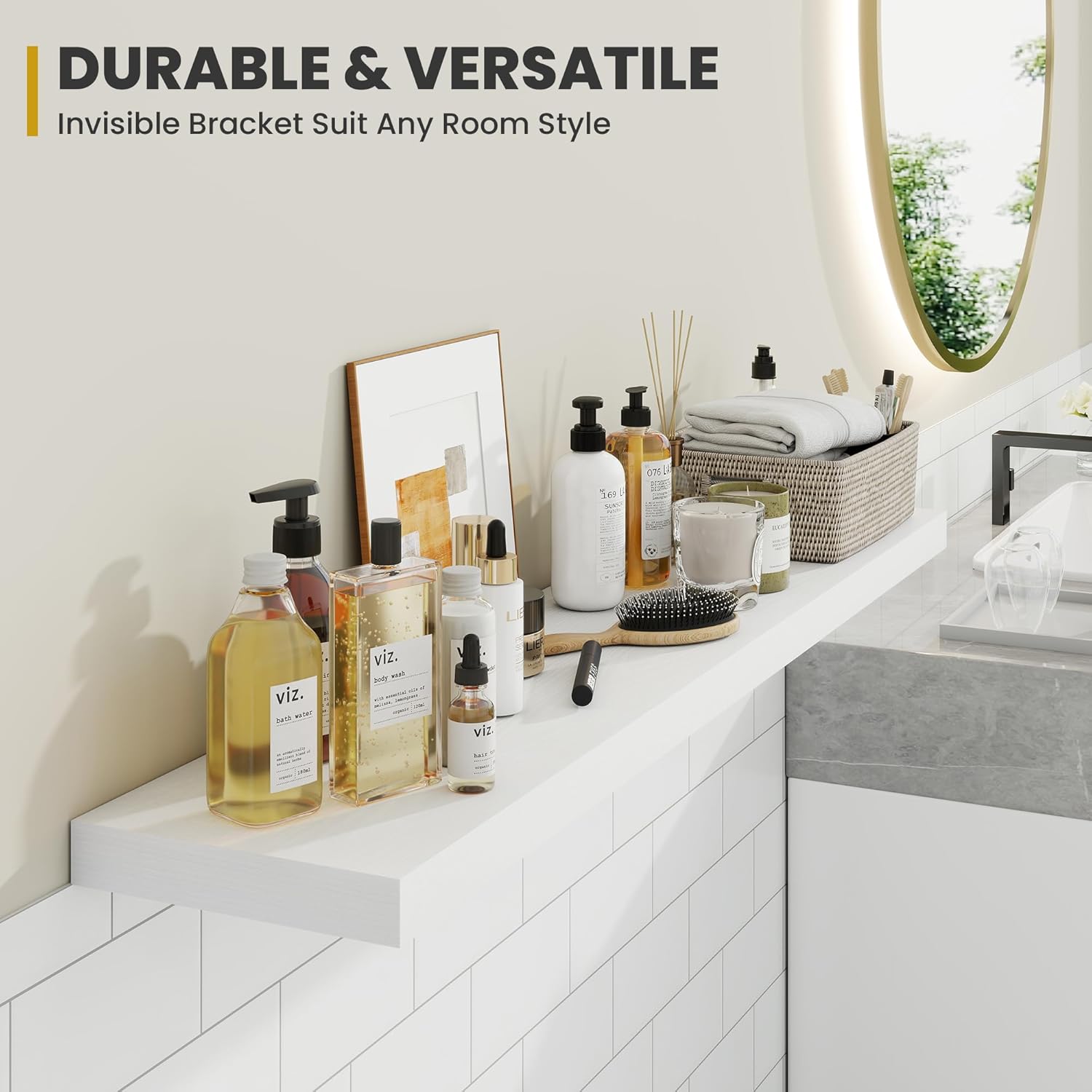 - [QUICK INSTALLATION WITH DETAILED GUIDES]: Our floating shelves include all mounting hardware and a comprehensive guide, enabling quick setup in under 10 minutes. Follow the step-by-step instructions to enjoy these beautiful shelves effortlessly, instantly upgrading your living space.