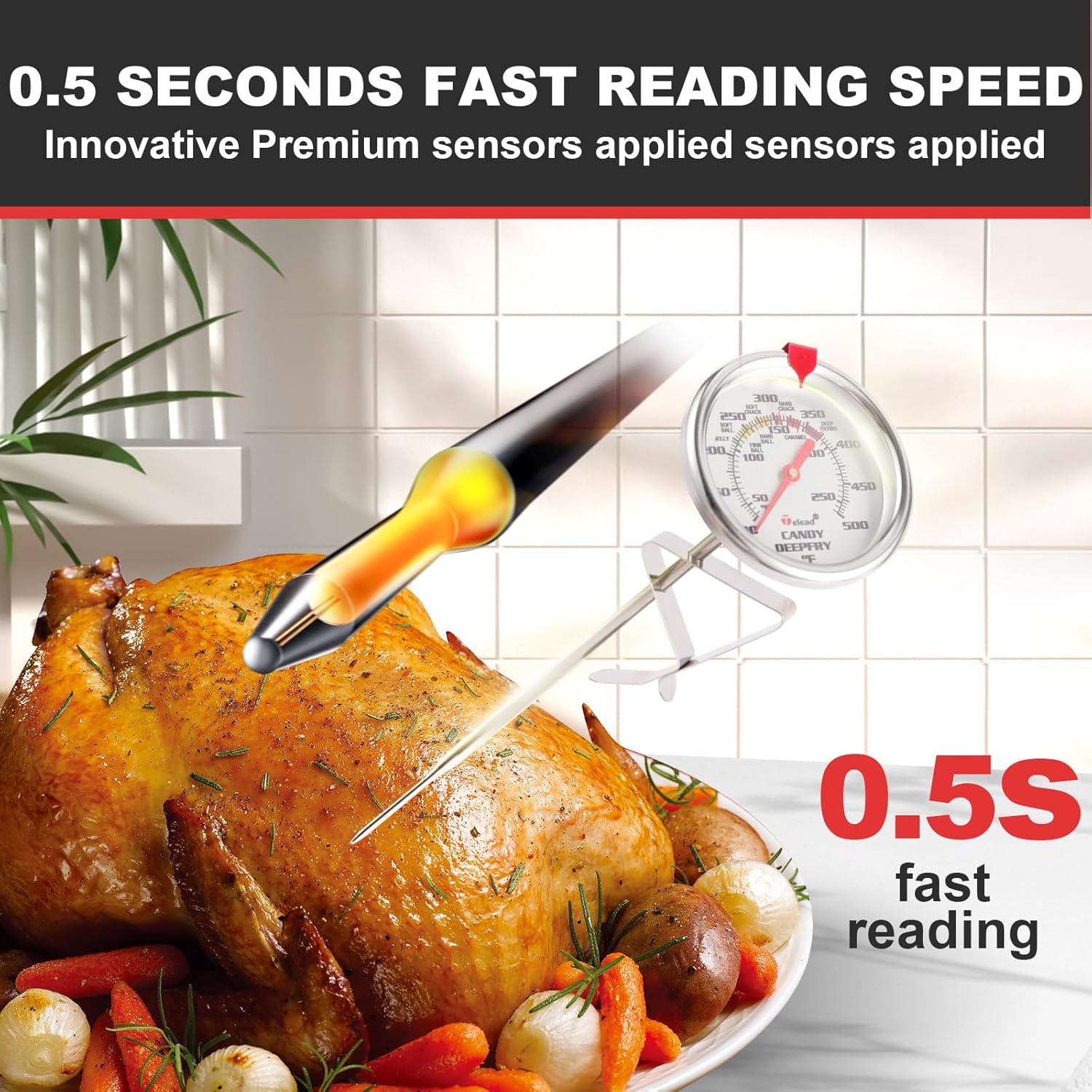 - 【Professional Precision】Detects critical sugar stages (thread 230°F - hard crack 310°F) and monitors frying oil up to 550°F. Dual-scale dial instantly converts Celsius for international recipes.