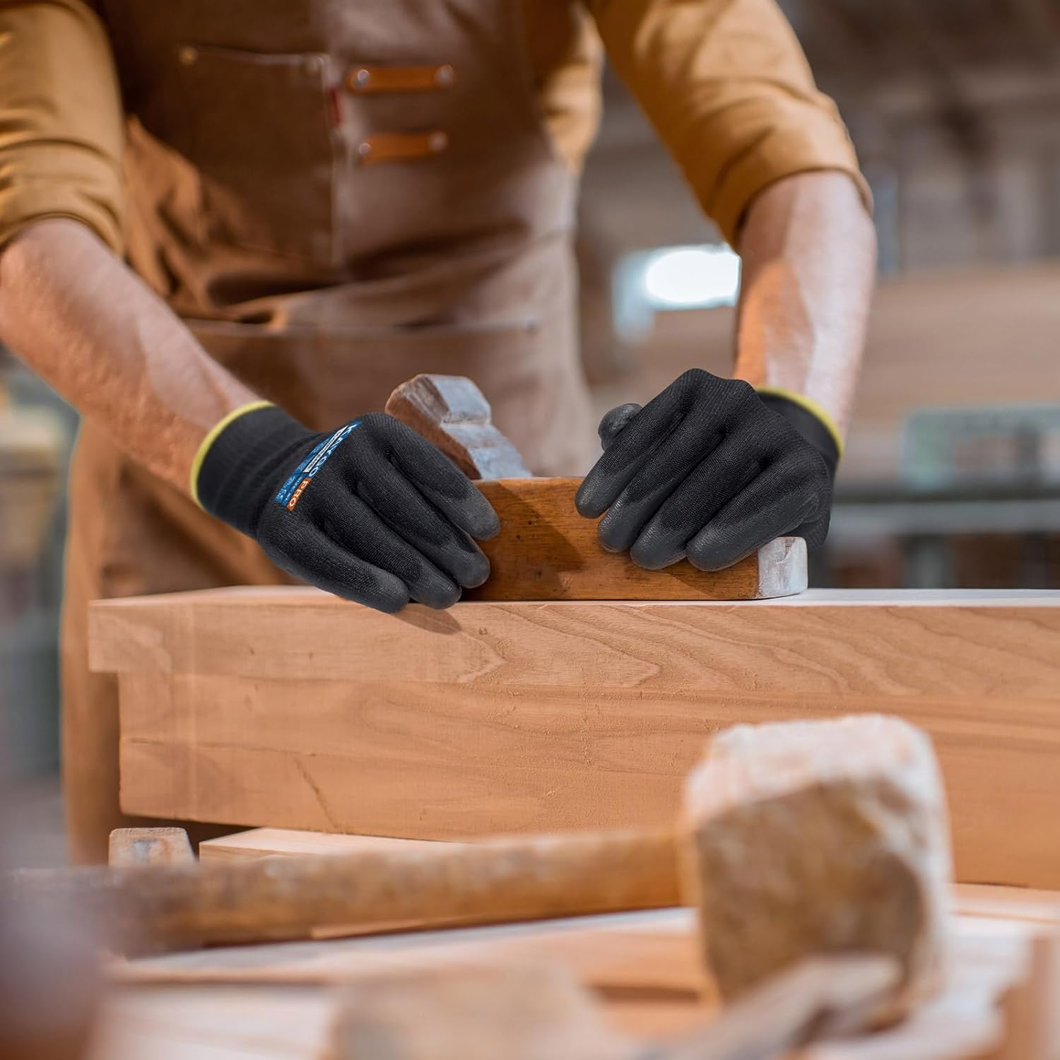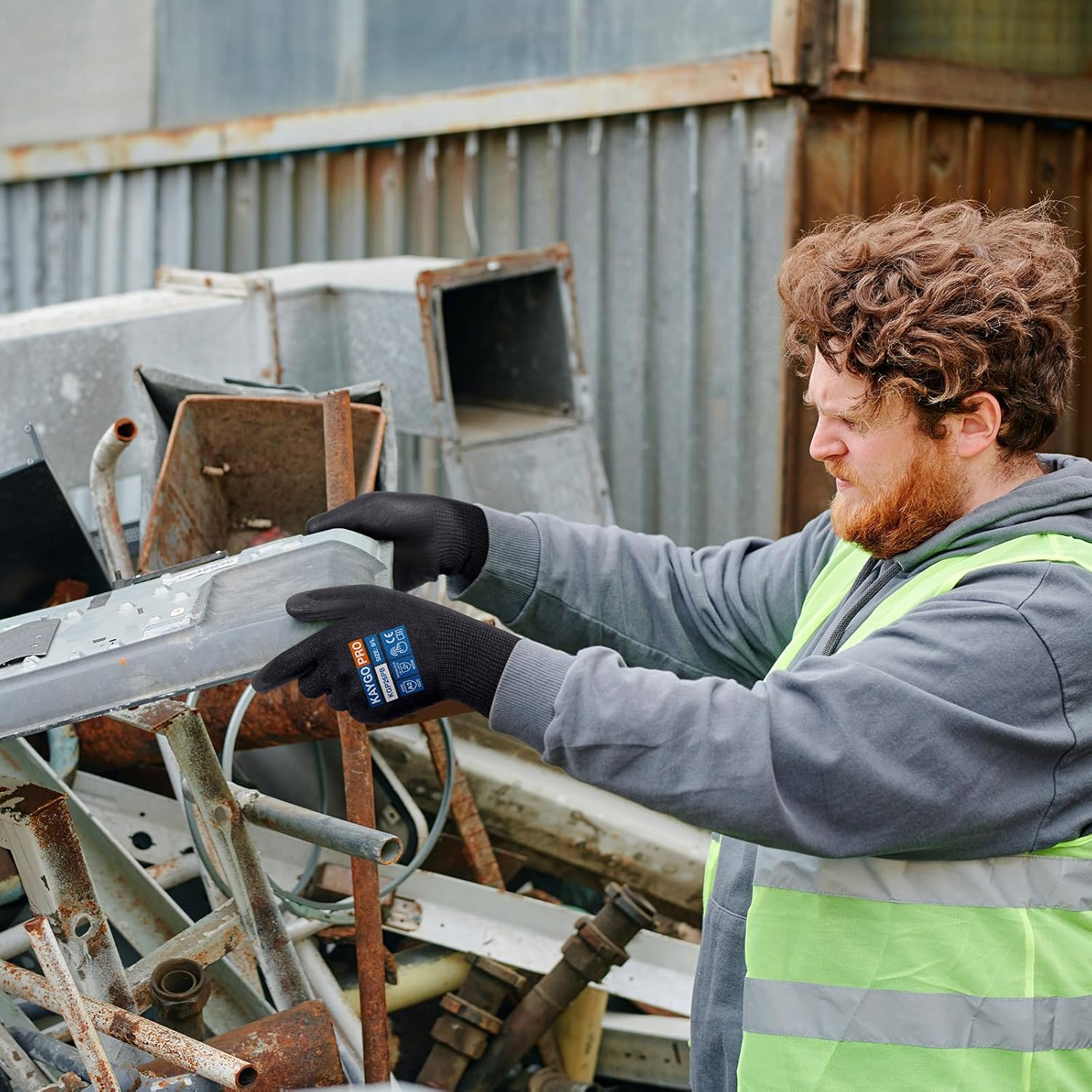 - Superior Grip and Durability: The polyurethane (PU) coating on the palms and fingertips provides excellent grip and abrasion resistance, making these gloves ideal for handling both dry and slightly oily materials