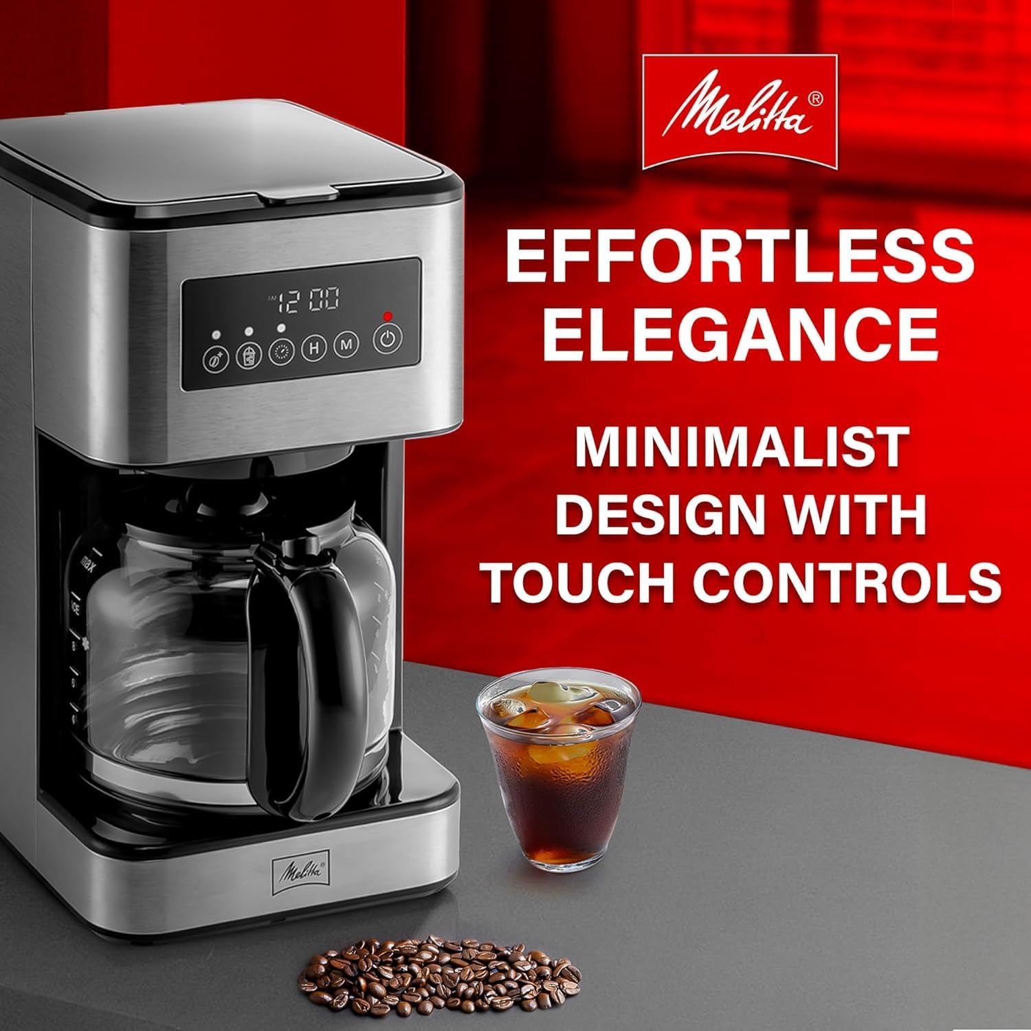 Melitta Aroma Series Programmable Drip Coffee Makers Parent (Aroma Tocco Plus Black and Stainless Steel 12 Cups) with 5-Pack Coffee Filters