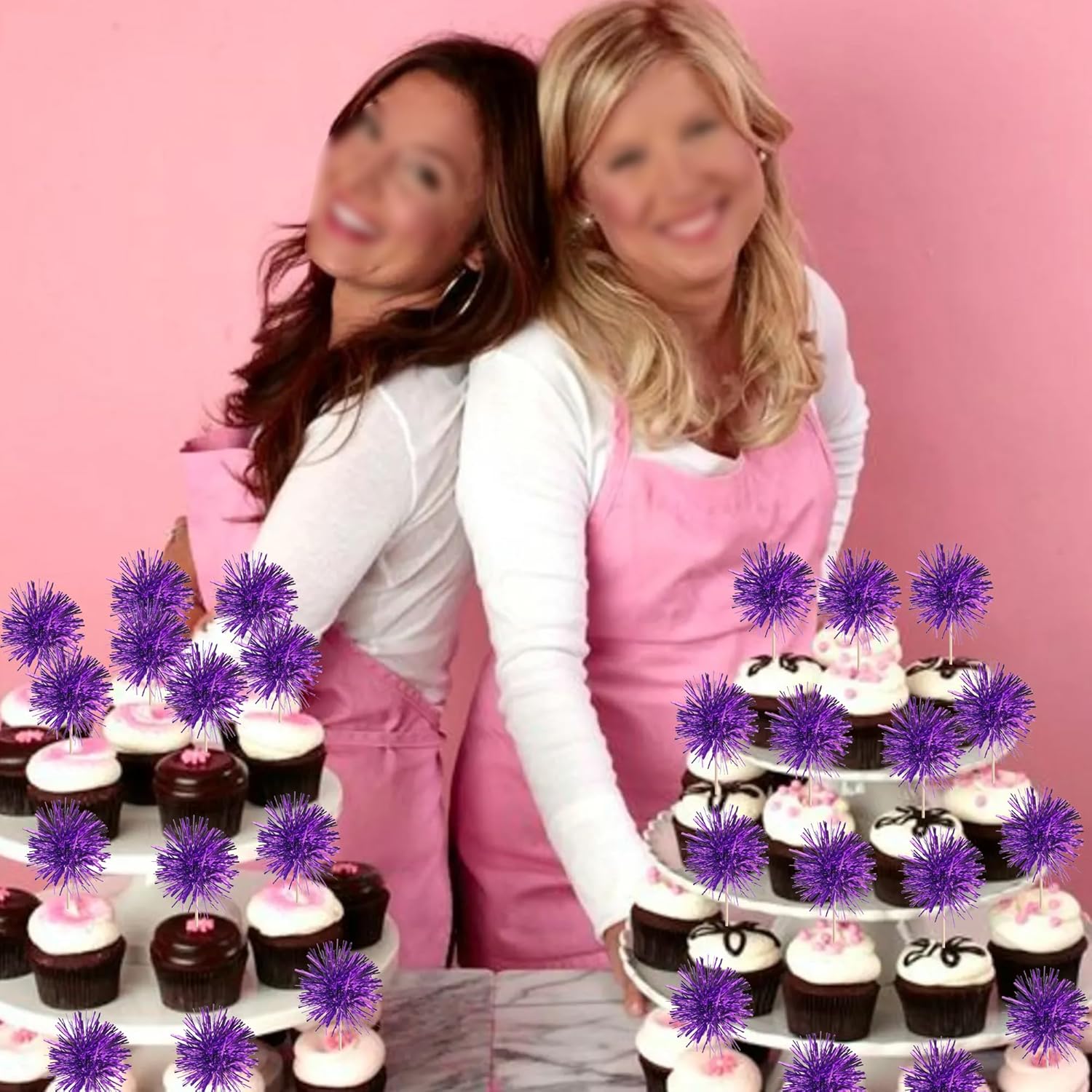 40 PCS Foil Firework Cupcake Toppers Fireworks Cupcake Picks Sparkle Tinsel Cake Decorations Cocktail Fruit Toothpick for Firework Theme Birthday Wedding Graduation Party Decorations Supplies Purple